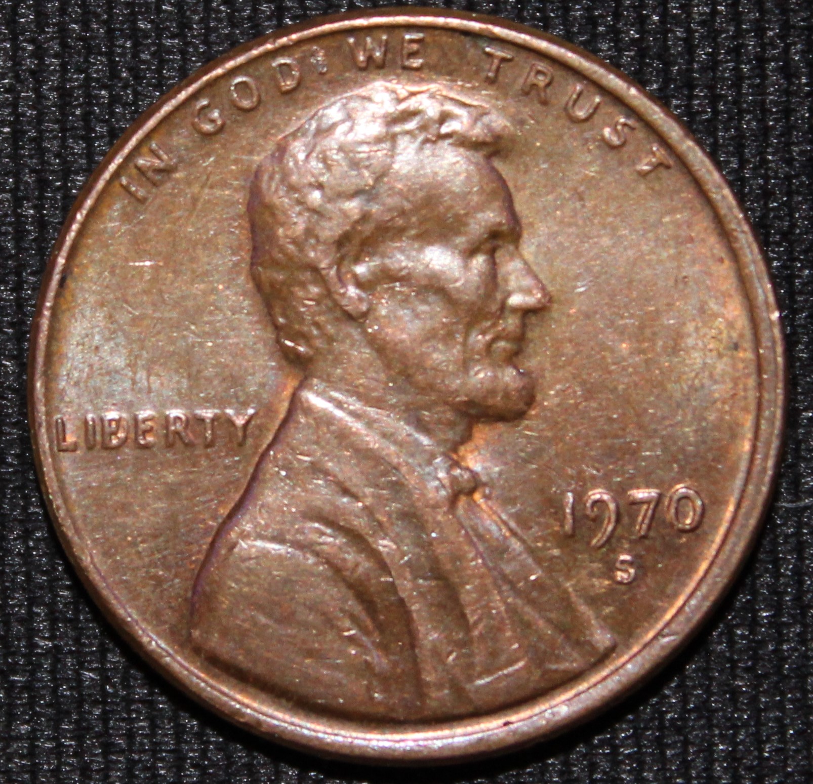 On the 70-S small date (business strike) LIBERTY will be weakly struck, yours is well struck. The 7 will be HIGH lined up with the other numbers. Yours is LOW, below that line. The key marker is the curl of the 9 going all the way around. Yours points down to the bottom of the 7 as shown in the photo below: