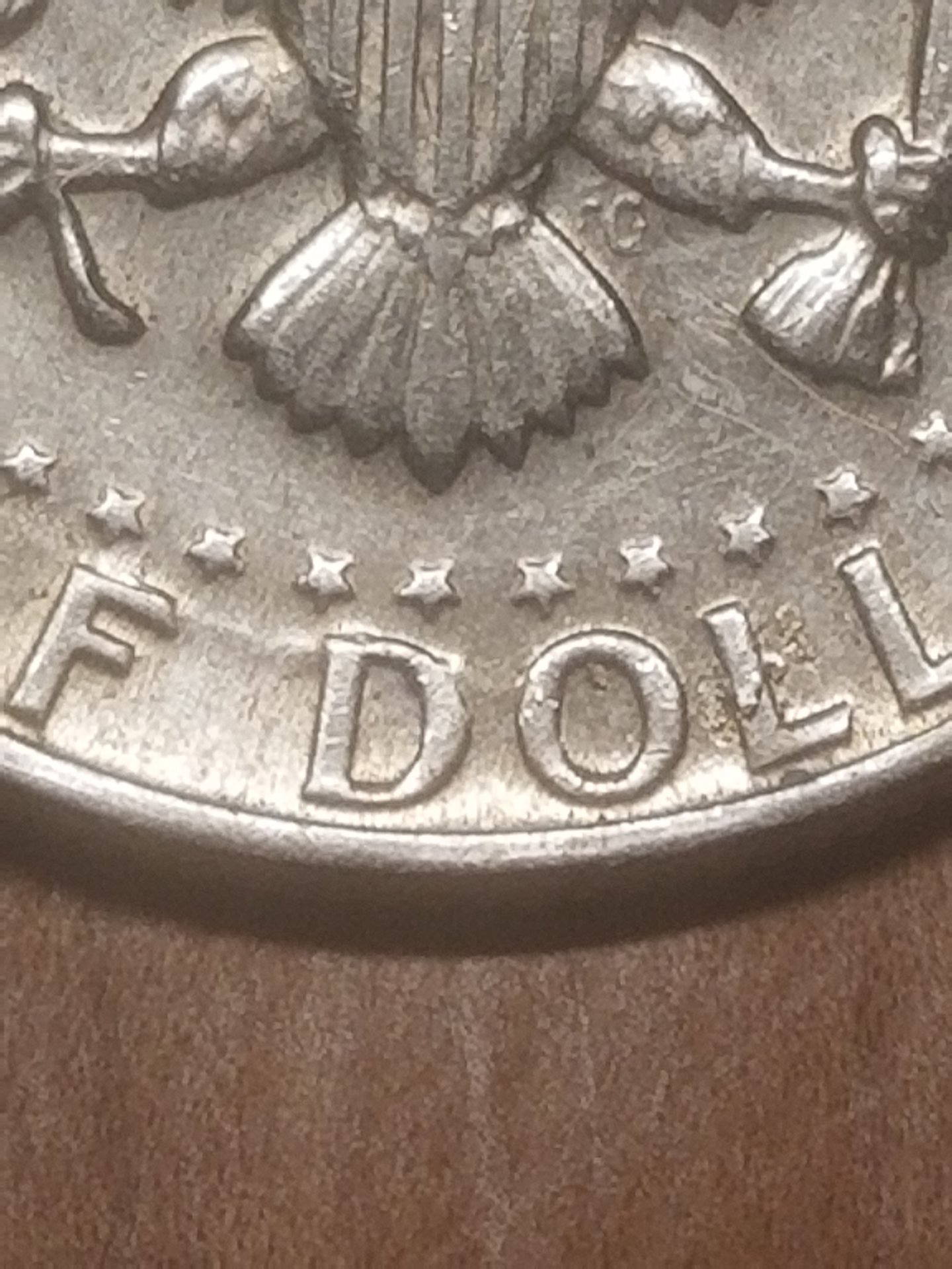 Hi everyone this is my first post. I am wanting to know if this coin is worth taking it to a professional to see if its an error worth anything. Please note the imperfections on the top of the F on Half and the faint line going to the top of the D on Dollar. I also would appreciate knowing what type of error this is as well. Thank you for your input regarding my find.