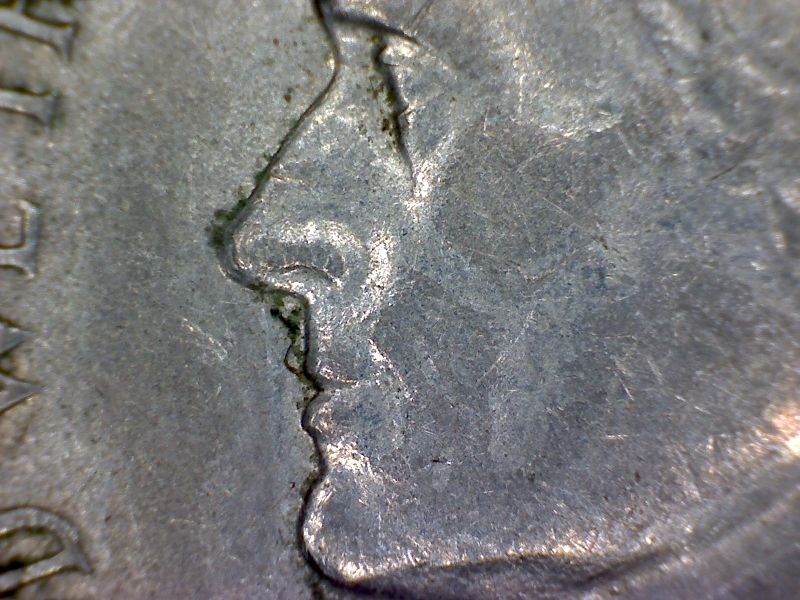 Is this a die break or crack under the nose? Slightly off center obverse rim.