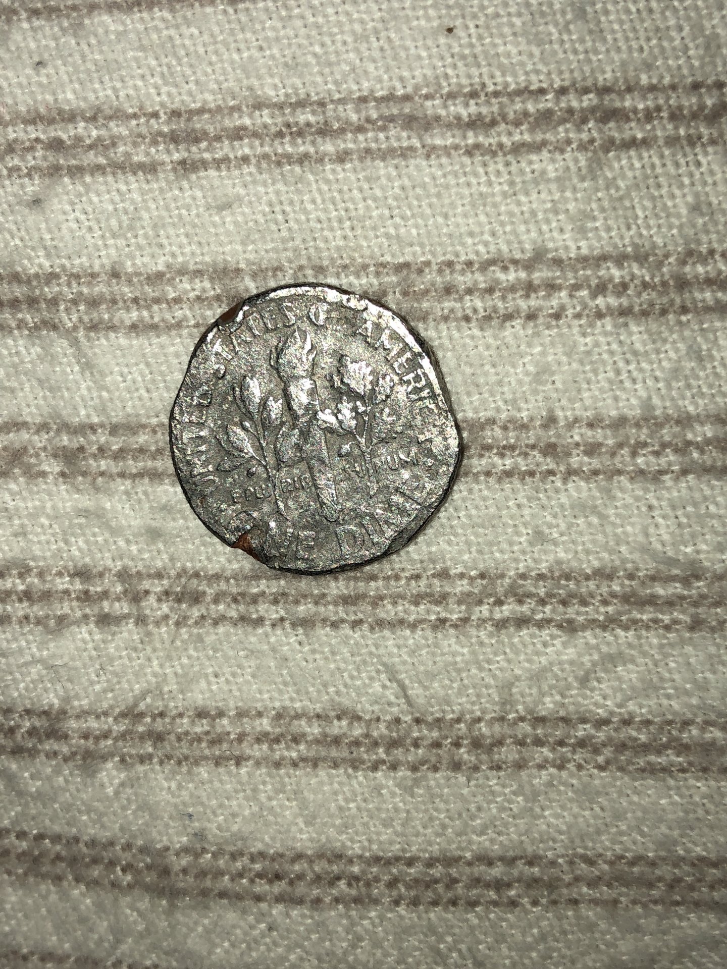 Damaged dime that can be recreated by throwing one in a McDonalds drive thru and picking it up a few days later. Hard to spend because a machine won't take it in that shape and you'll get a dirty look from the 7-11 clerk or fruit seller. The program is still around, I take all my mutilated coins from metal detecting once a year to the bank (credit union) and they give me cash. I try and save up a dollar or two. It's usually zincs, but I have had a few bent quarters, dimes and nickels.