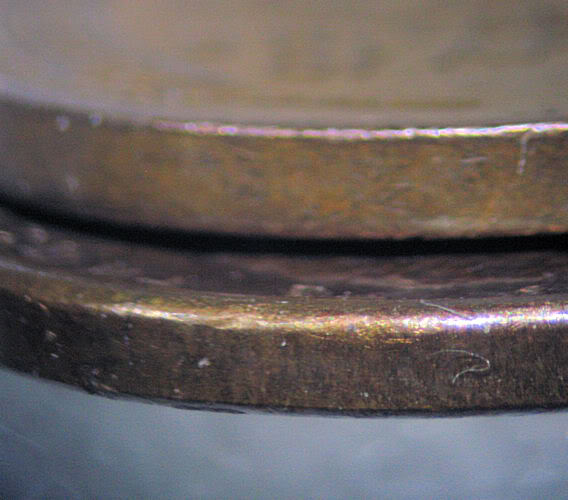 Thank you so much for the great info. Just when I thought we could move on, I instead took photos of the edges for a few of the cents. They are not rounded, but rather have the angles as you described for a proof strike.