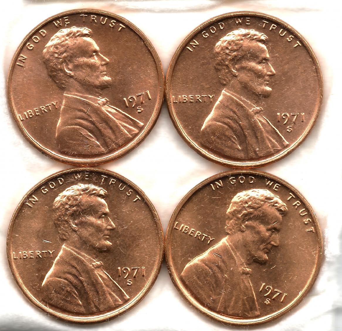 I was being generalized and left out the most important part, sorry. I was talking about the business strike 71-S cent. There were no significant DDO for the business strike ( intended for ciculation), the 3 DDO are found in the 71-S Proof cents. Your cent are business strikes ( especially if they came in rolls). As to the 1971 P, there are several. Go to http://www.coppercoins.com and in the left column, click on search varieties, enter the boxes and submit. You will see a list of possible varieties, but the photo is small. Notice the last line under each description called "marker photos". They may have EDS,MDS,LDS ( early,middle,late die states. Click on those such as this one, and you will see large photos like thishttp://www.coppercoins.com/lincoln/diestate.php?date=1971&die_id=1971p1do001&die_state=mds Hope this helps