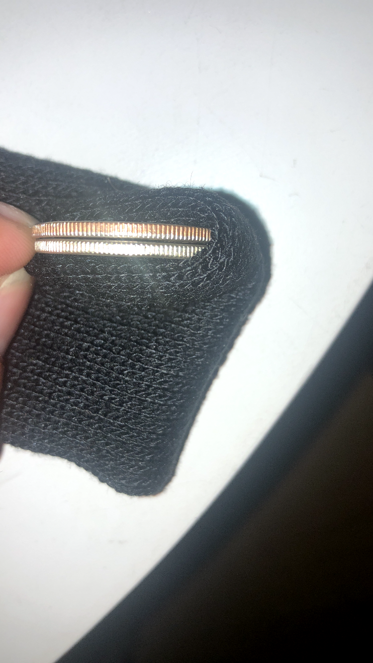 So I’m trying to figure if One of my 71d half dollars is silver so I did the basic tissue test. I have about 10 71d coins and this one came the closet IMO to the 67 half dollar. Unfortunately I’m new to this and bought a scale that just does whole numbers. And all but this one the weights for the 71d were bouncing from 10g to 11g. On this one is never went down to 11g even by tapping at it to move the weight it went directly back to 11g. Pictures below. I understand the 71d has a copper band. But just want to inform myself.