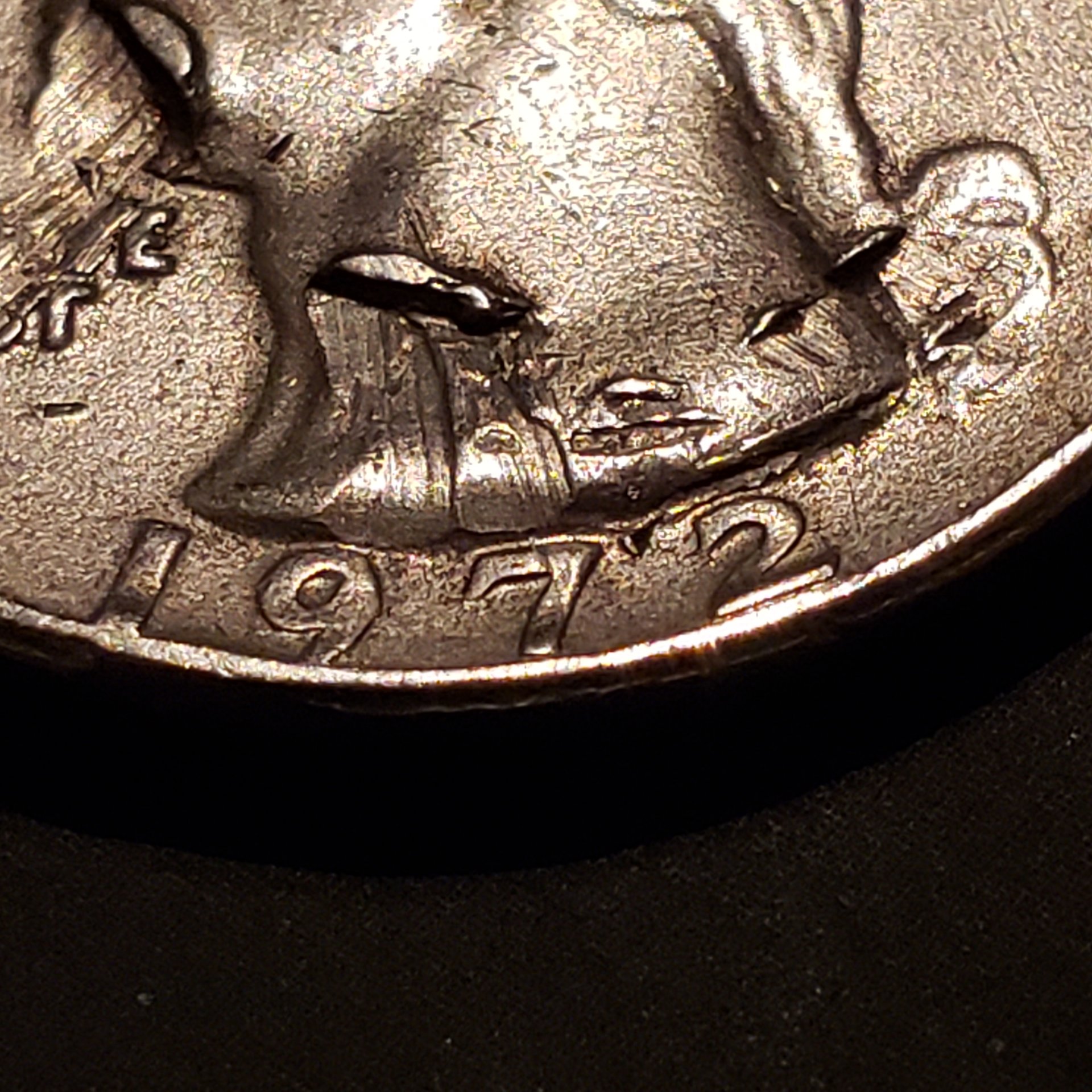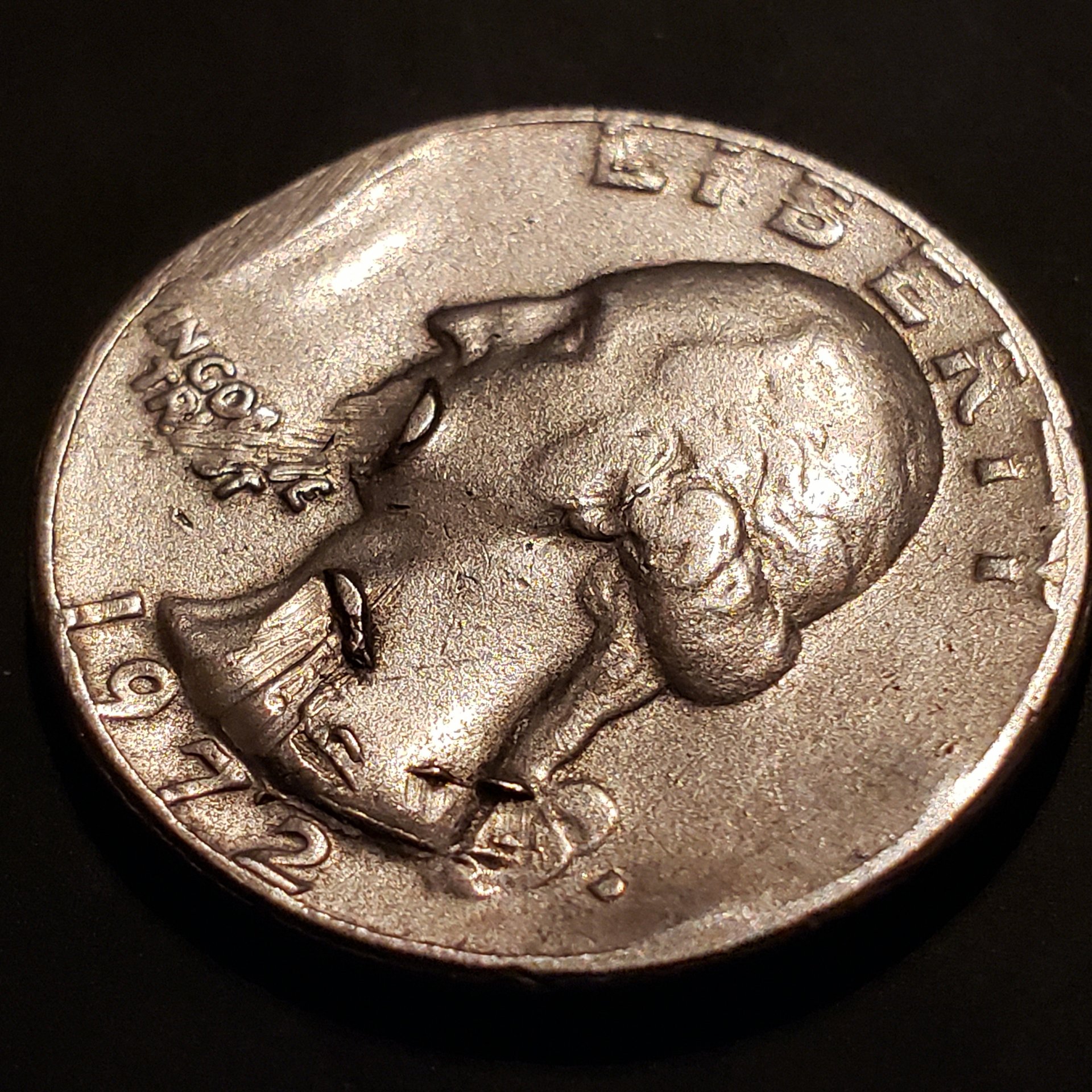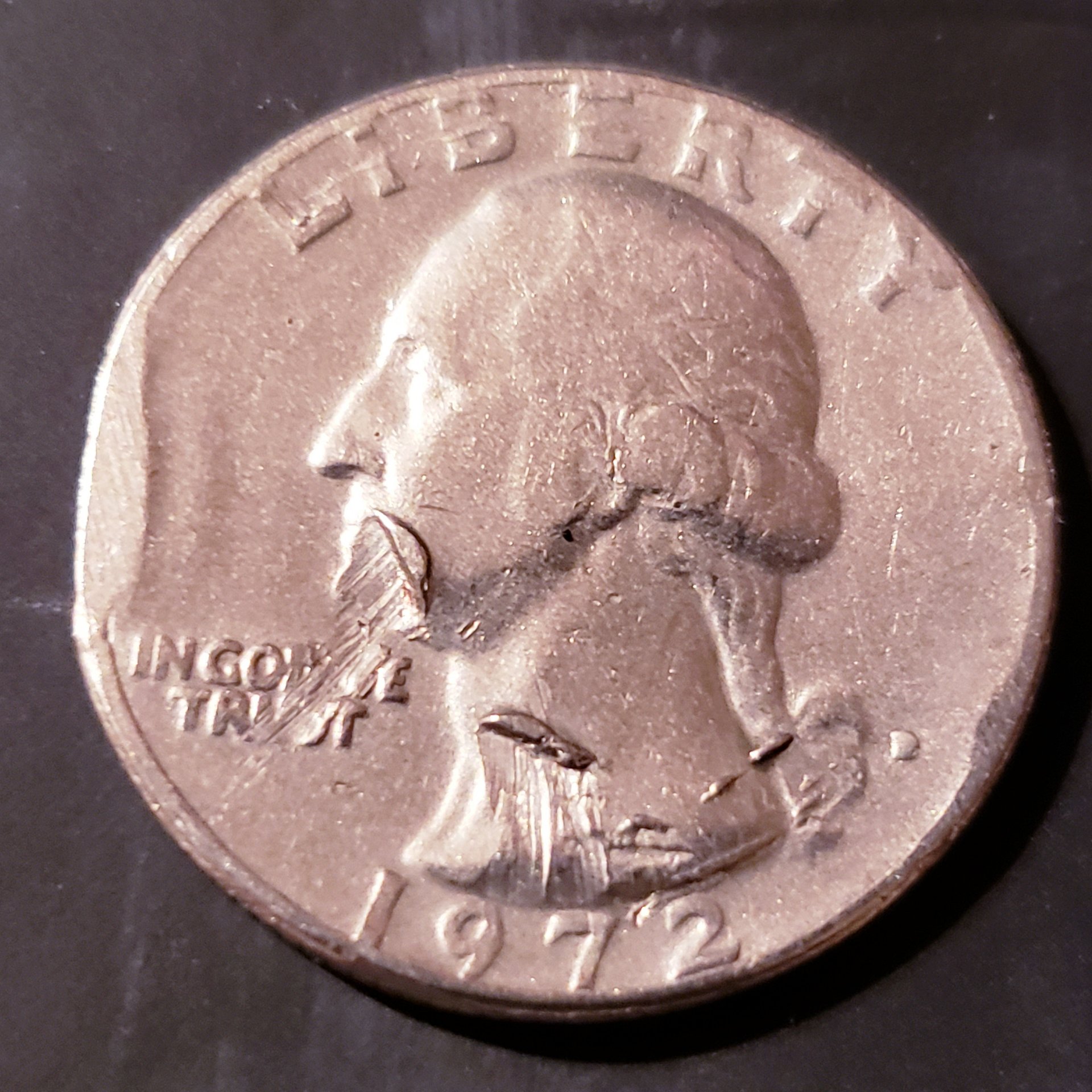 Only my second post.. I stumbled upon another odd coin; at least odd to me. 1972 D Quarter. D filled in, plus a lot of other blemishes. Still learning so maybe you can help with mint vs. Post mint errors. A lot going on with this one....