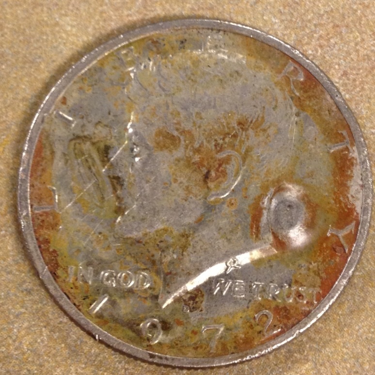Or (more likely) simply burned in a fire. There was a small air bubble inside the coin that built up pressure as the coin was heated. When the outside clad layers got hot enough to become a bit plastic the air bubble (under pressure) inside the coin expanded and pushed out the clad layer. After the coin cooled the bubble (or rather the clad layer that the bubble pushed-out) remained.