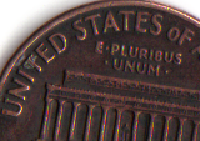 I have made a post about this coin before, but I couldn't get the pictures of better quailty. I have been experimenting a bit. I am really hoping these pictures are better. I was doing some research on the markings of a true doubled die, such as looking for serifs on the corners and horizontal notching. I am also see on this coin that it doesn't appear to have the smash shelf look, it is more rounded. The "O" in ONE is very rounded and nice. The entire reverse shows the same sherifs and notiching. I am a novious and would love any opinion offered. I appreciate you all looking at this for me. Thank you Penny