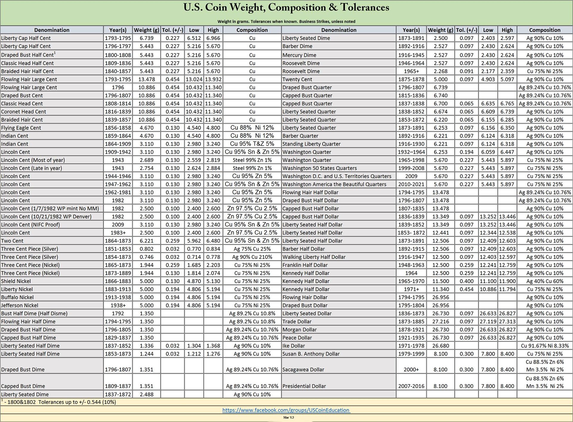 I like this chart, too, but... where do you get the odd nominal-weight figures for Barber/Merc/Roosevelt silver dimes and Barber/SL/Washington quarters?