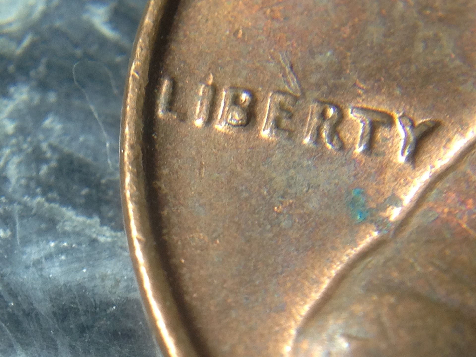 Agreed. And other than the verdigris the only other thing I see is the blob in the lower loop of the "B". That I would label a "die chip".