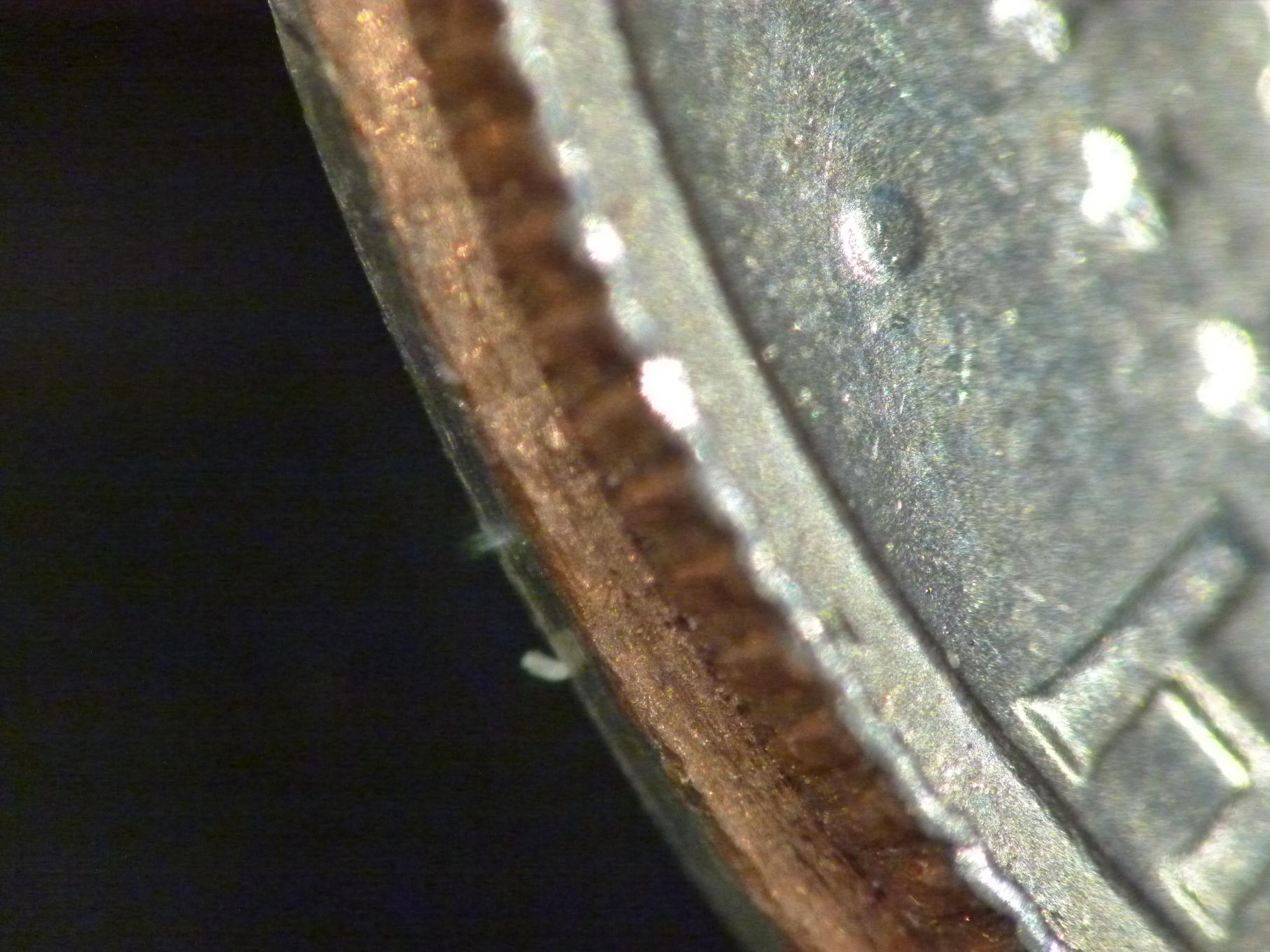 It appears to be a Partial Collar Strike, also nicknamed Railroad Rim. This occurs when the collar is only partially raised around the coin. Nice find! Chris