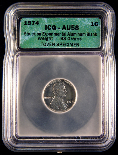 How strange. I know for a fact that PCGS would not grade this piece which has a similar history. It was returned to the owner recently along with a refund and an EMail saying they would not slab this coin because it was illegal to own. I'm not so sure NGC or PCGS would certify a 1974 aluminum cent.