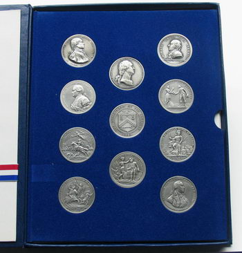 Here's an interesting thread about these medals from last year........http://www.cointalk.com/t172692-5/ As for the pewter ones, I think you're thinking of the "Americas First Medals" series which occurred around the same time. They were pewter......http://www.cointalk.com/members/green18/albums/americas-first-medals/