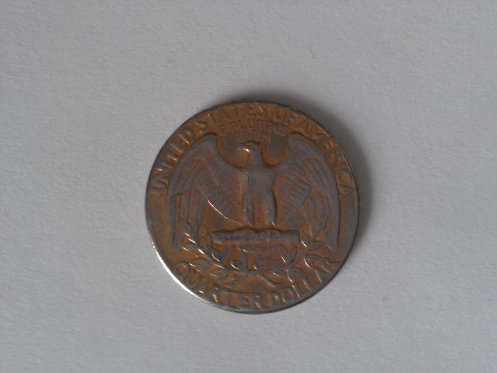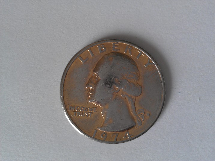 I was looking through my change and I came upon a strange looking quarter. It's a 1974 quarter, but you can see that there is a brownish copper look to it. At first I thought it was just rust or discoloration but as you move it around (especially in sunlight) the color moves too. Can anyone tell me what could of caused this and is it worth anything other than face value? WP_000128.jpg WP_000127.jpg