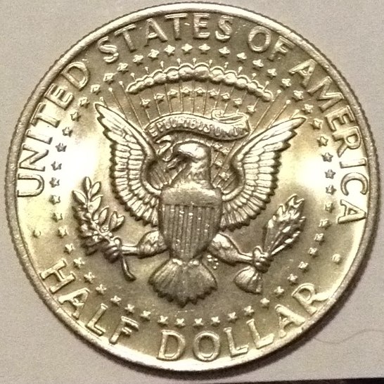 I've been going over pictures of coins in my collection, and I noticed what appears to be doubling in States on the reverse of this Kennedy half. I promise to do my best and get pictures of the obverse when I get home in a few months. I'm going through pictures on my computer to see if I can find a picture of the obverse. So far no luck. Is it doubling, or is the lighting just making it look that way?