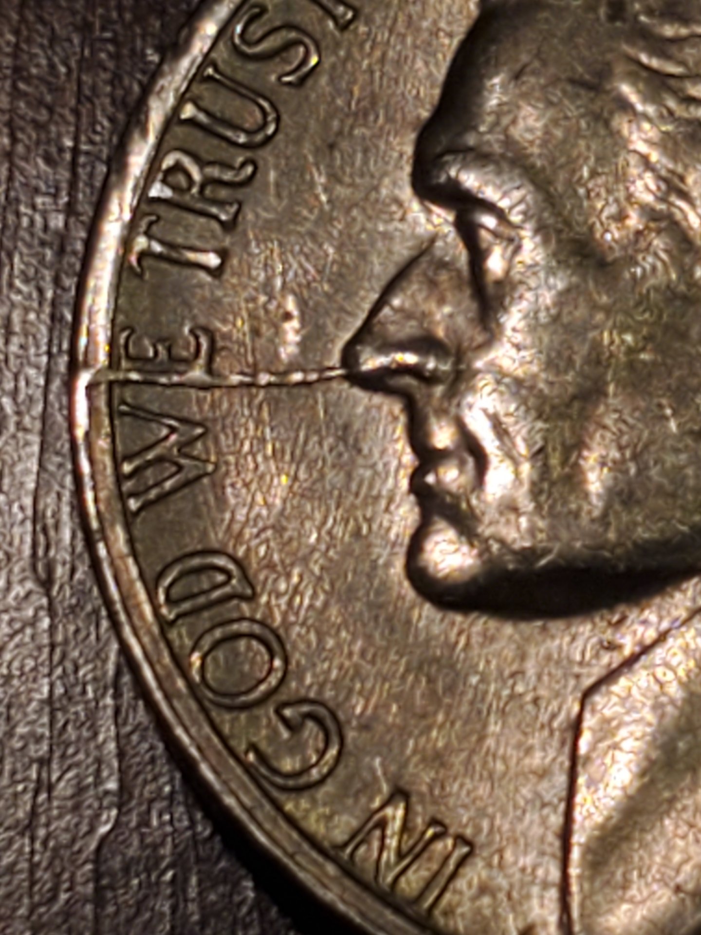 Found this in my change today! Nice die break across the obverse and another winding through the Monticello on the reverse. First large die break i have found, so I am happy!