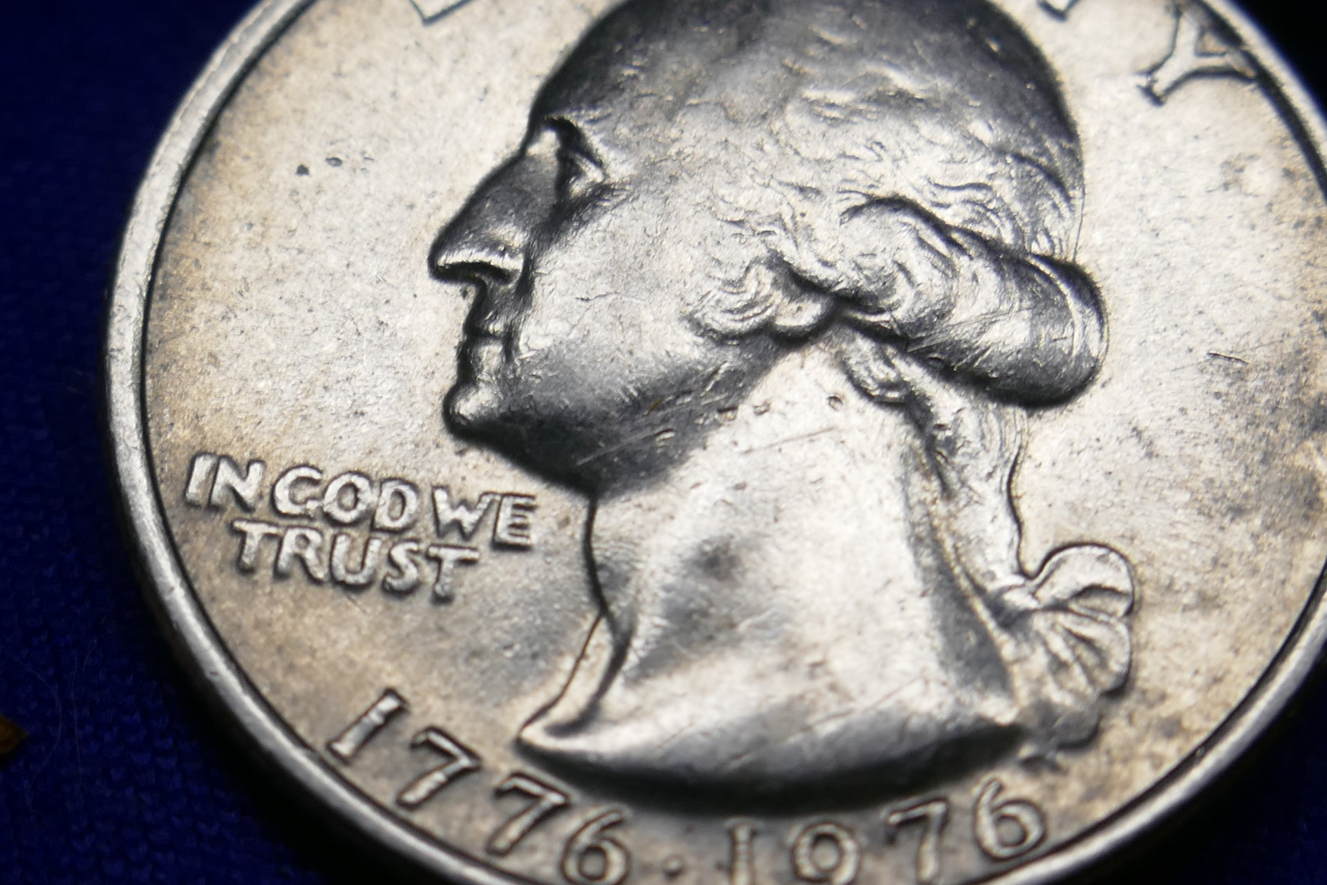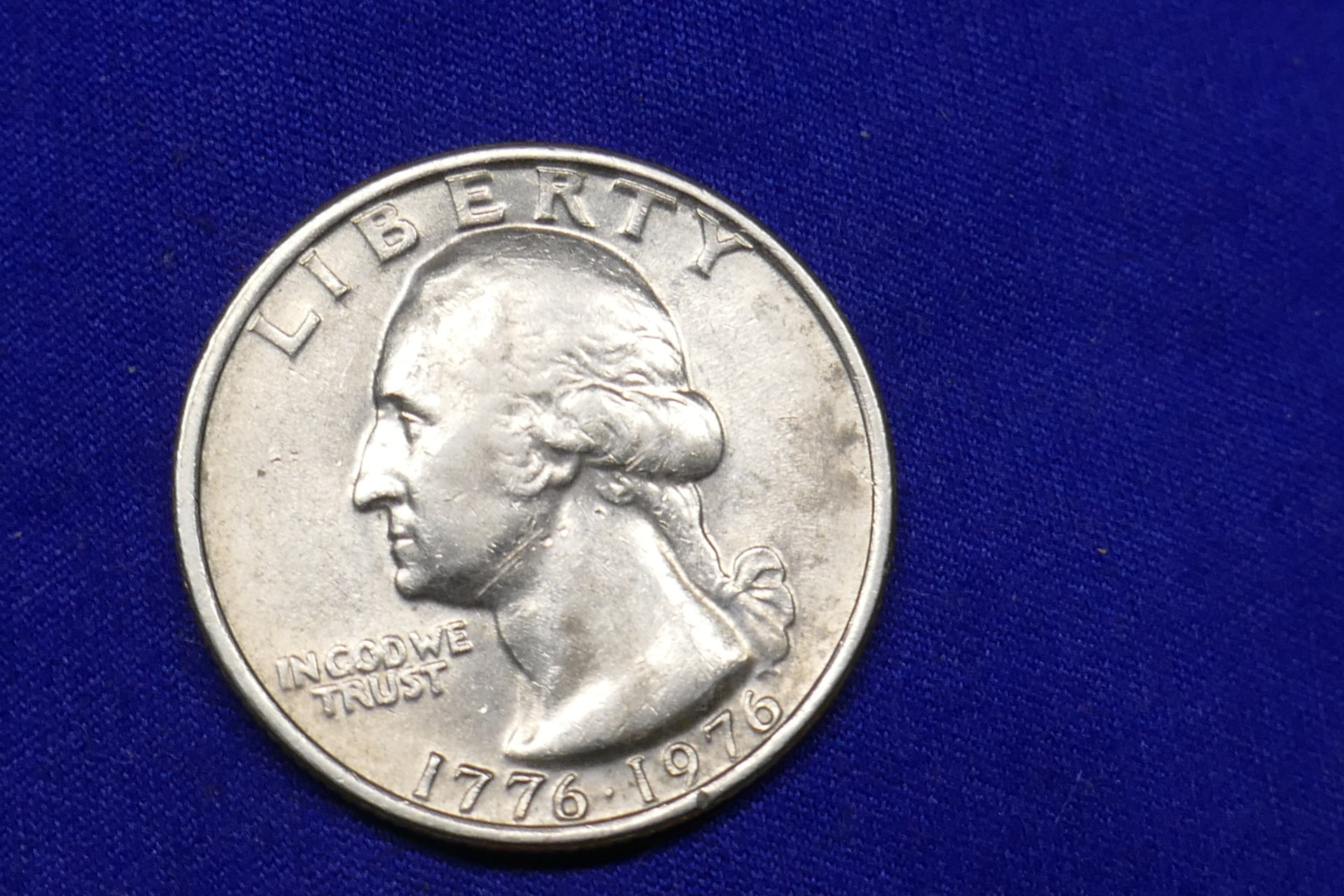 There looks like the date has doubling on the 7 and 9 at the bottom. Washington's pony at the bottom ribbon. and also Washington's ear to the right. also may have been struck by another quarter.