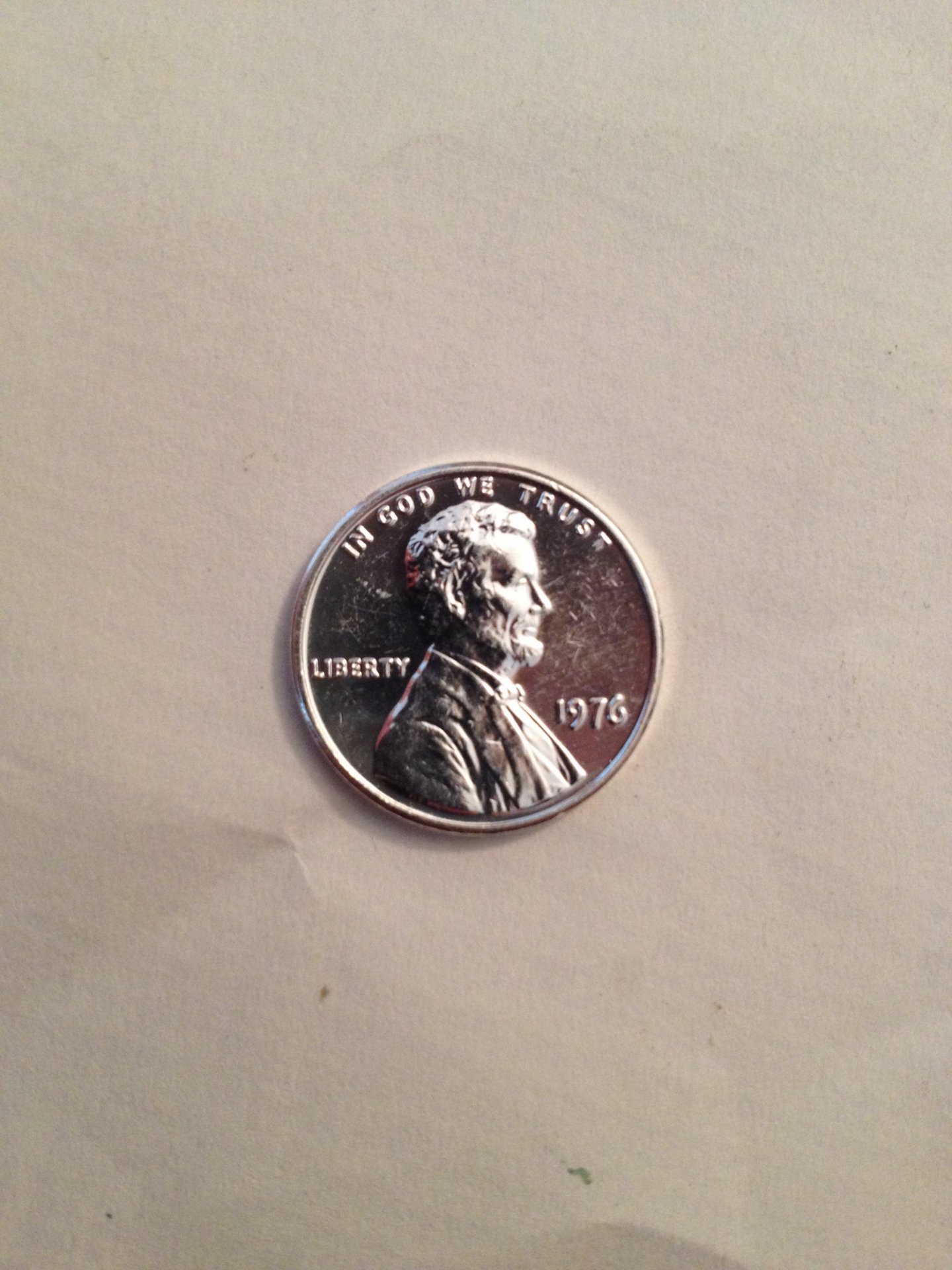 Hello all, I recently came across a 1976 Lincoln Cent that feels and looks differently than other cents I have come across. It came as part of a 1776-1976 bicentennial collection. It has a silvery mirror like color, but at the same time it has the cleaning marks like someone electroplated it. They either did a very good job in making the coin give off the silver appearance or do I have something unique? It is not attracted to a magnet and rings differently when dropped. The coloring is also along the rim of the coin. Is it possible someone at the mint struck a 1976 cent on the 1974-1975 experimental aluminum planchet? I'm more inclined to believe that someone has electroplated the coin as a science experiment but thought it interesting it came as part of the bicentennial mint cent. I'm hopefully going to be taking this to the coin dealer in the area to weigh it since I don't have a scale.