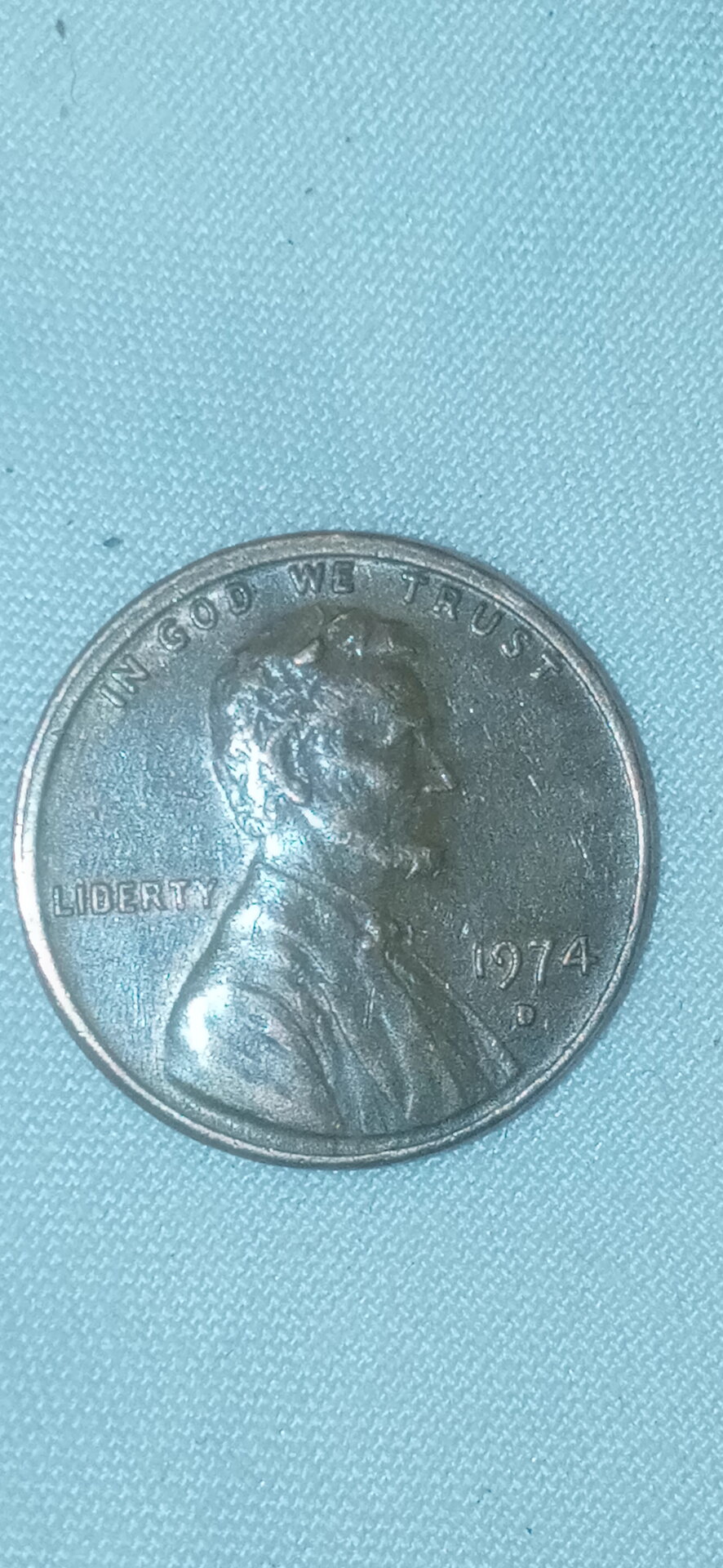 It's a 1974 D actually. Looks like the copper was scrapped (damaged). Looks like from the top of head -down and across from top of forehead - back. Not the greatest pix as mentioned plus I'm just a newbie on this, so I'm probably incorrect. This is just my observance.