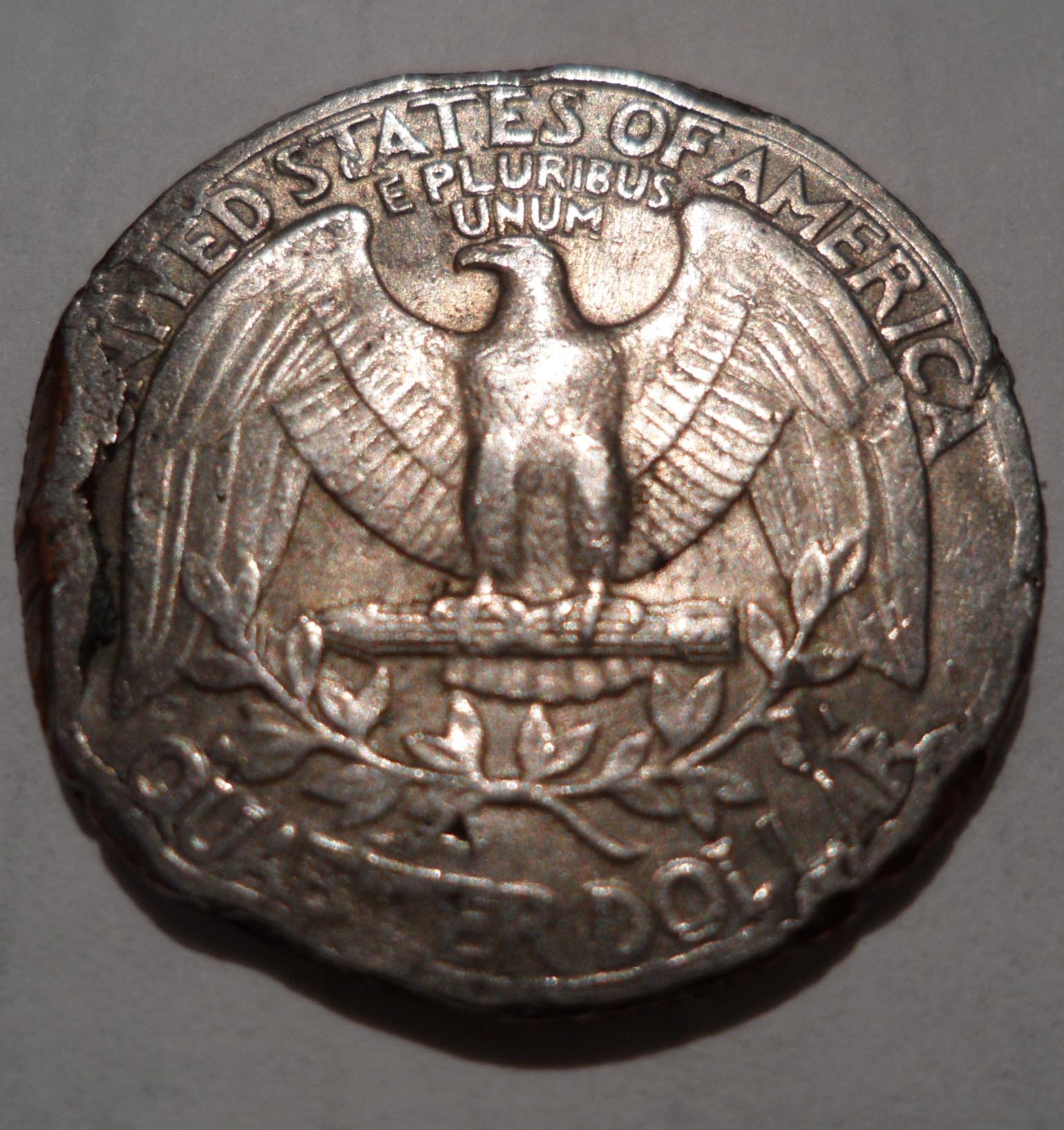 Can anyone shed some light on the reason for this flat area on the obverse between the In God we trust and Liberty as well as within the Liberty? It also appears at the 4:00 o'clock position, but doesn't show up very well in the pic. In the picture, the flat looks like a "berm" but it is in fact flat and on the same plain as the hair The reverse is damaged, (hopefully by the minting) and there is a chunk out of the right wing. Whatcha think? As always, thank you in advance. Dubya