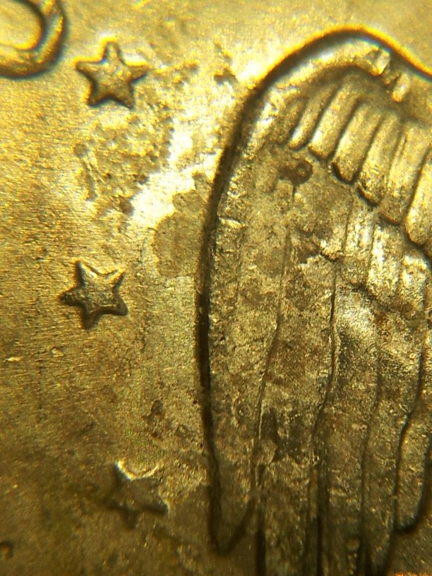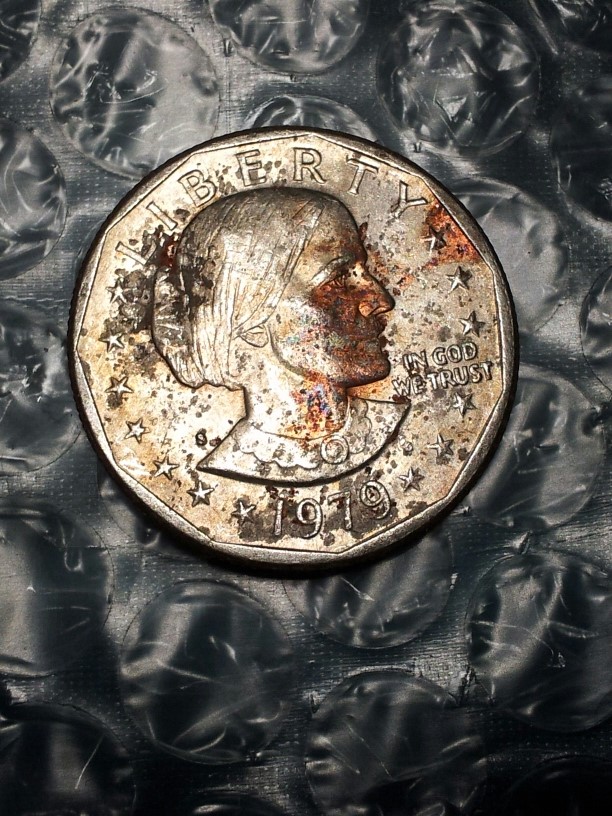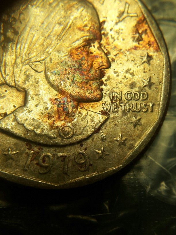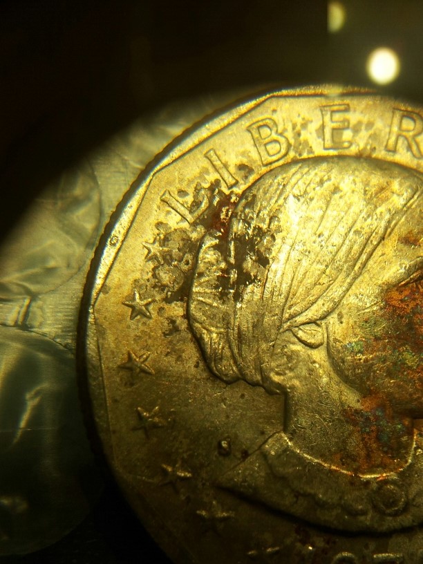 Good evening everyone. i found a 1979 s SBA dollar coin which at first looked like it just had crud on it but then i recently saw rickmps post of his nickel that sort of had similar features to my 1979 s SBA dollar and so i am just wondering if this is indeed an annealing error of some sort? any advice or knowledge on if it is or isn't?