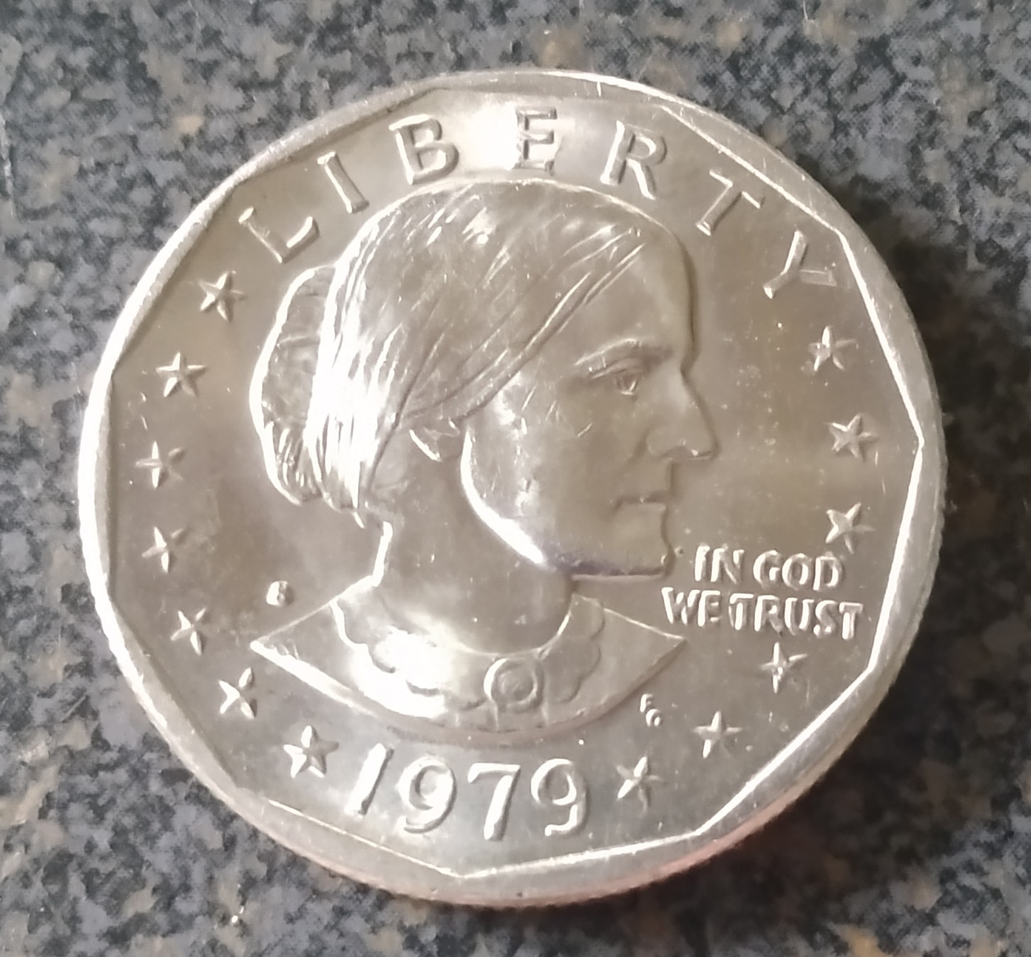 There was a Type 1 and a Type 2 Susan B. Anthony dollar in 1979, with the S being the difference. The filled S, like yours, was the Type 1. I'm sorry to say the Type 2s are more valuable.