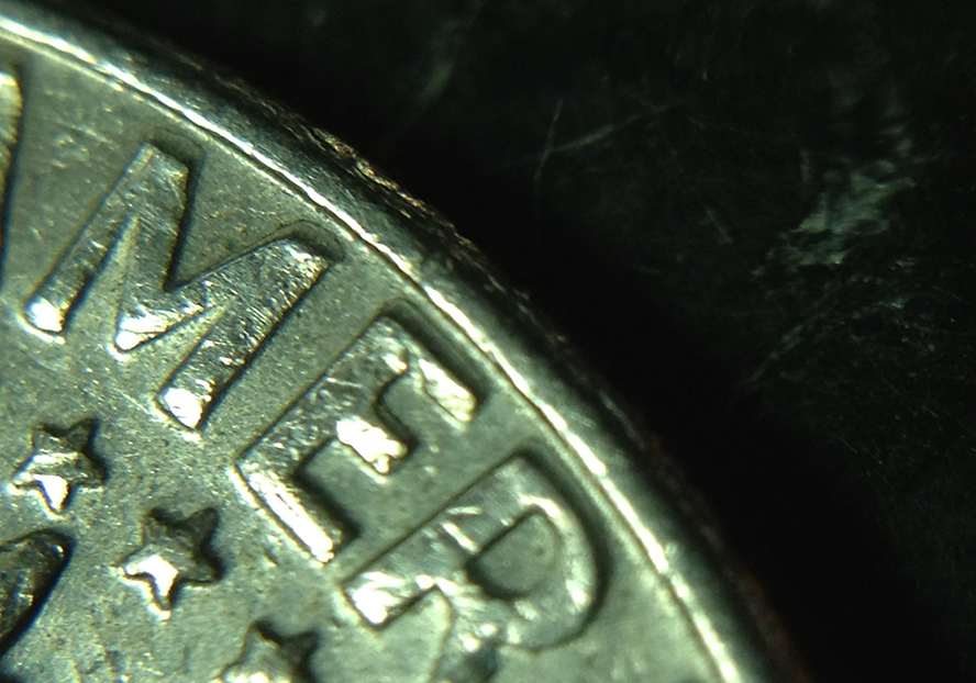 Tommy, with a true DD of a pre- 'single squeeze' hubbing, the thickness may be very slightly different from the first hubbing, but closer to the same as the process was repeated in order to get a properly sunk die ( the movement was suppose to be the same for each time ) . Look at the thickness of the MDD you show, and then reverse it in your mind so the overlap is that far from the top of the original rather than from the bottom, and you will have an idea of what I am talking about. I have seen DD with lesser elevation, but that is when split serifs can verify it .