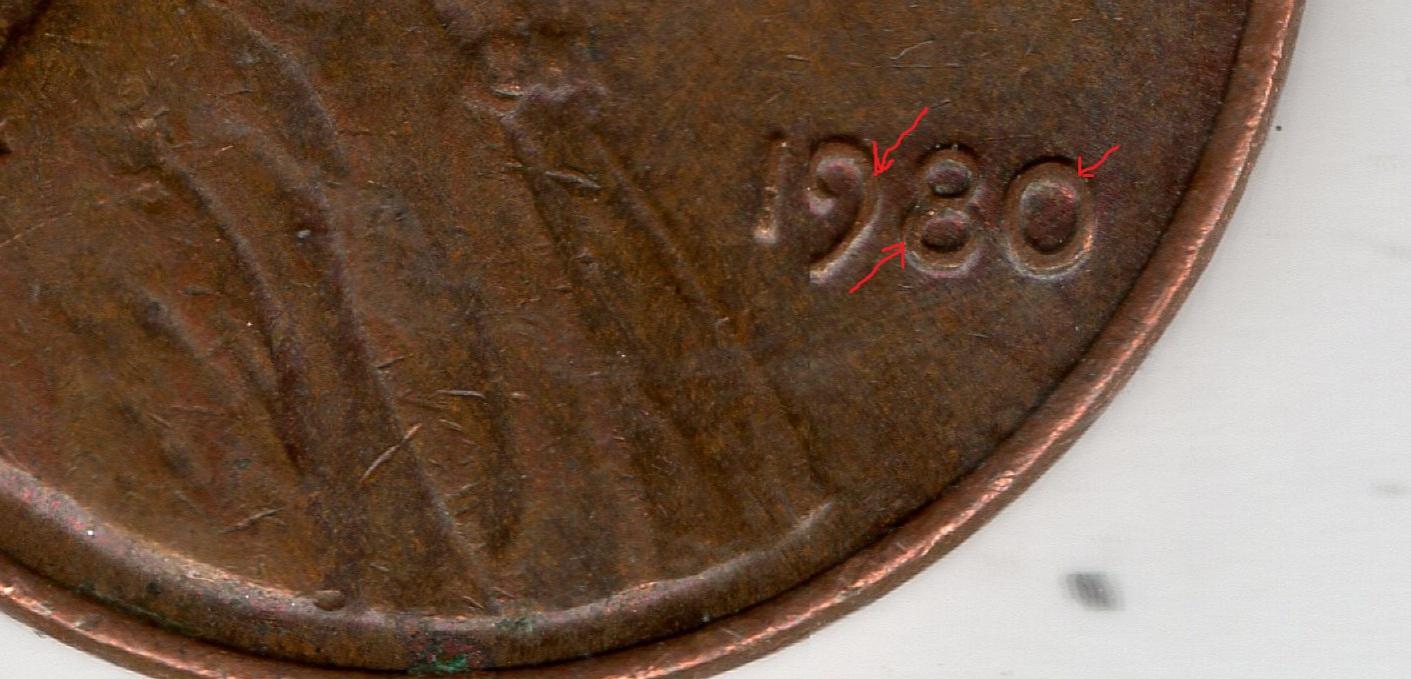 Hello i coin roll searched a box today and i have another two suspected varieties. First is a suspected worn down 1980 double die Second is a 1989 broken d? Thoughts?