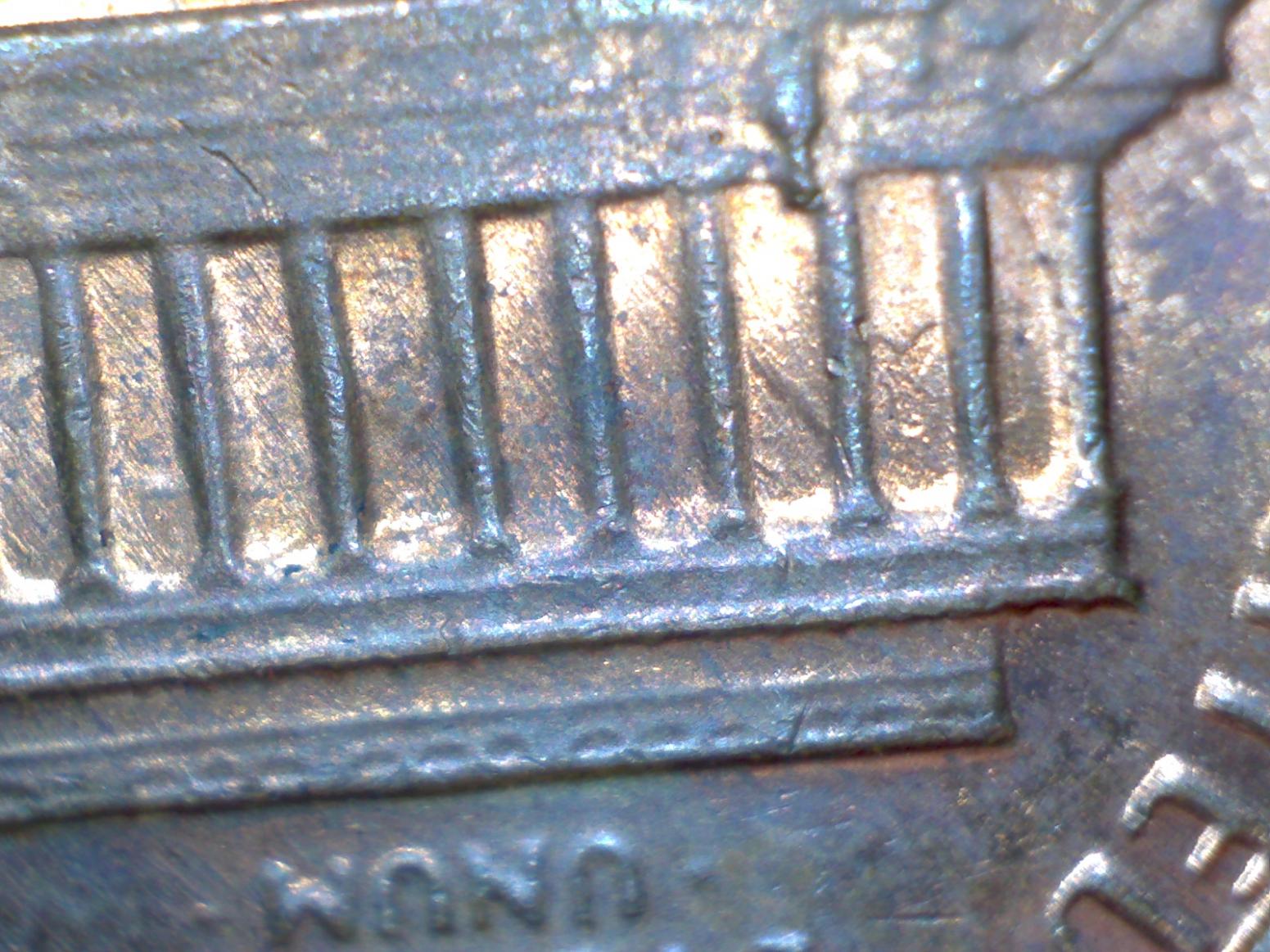 There is a Y in the lincoln memorial that is incuse. There is also a T next to it but you can't see in the photos. Are these dropped letters, and is it possible to have them right in a row??