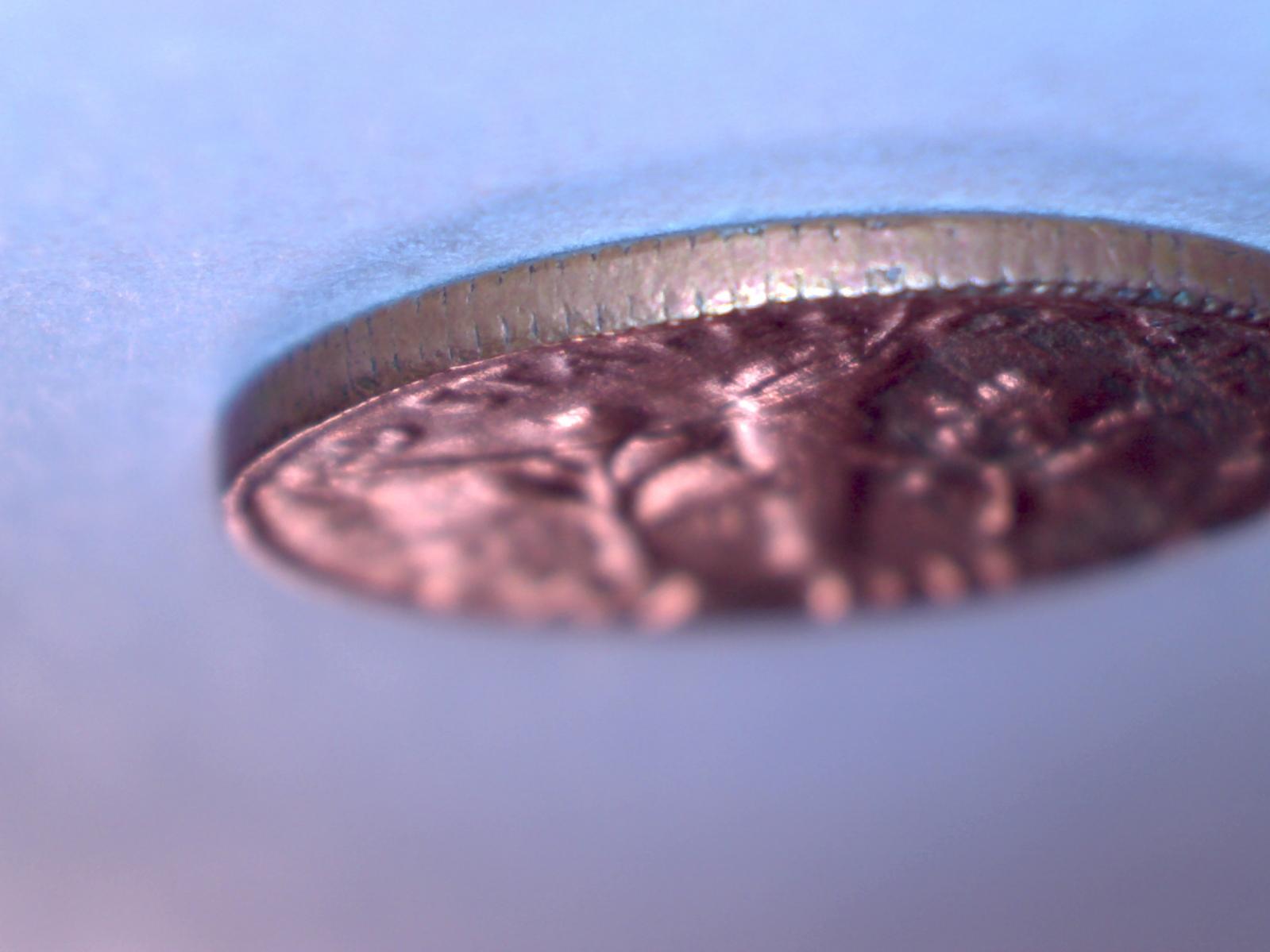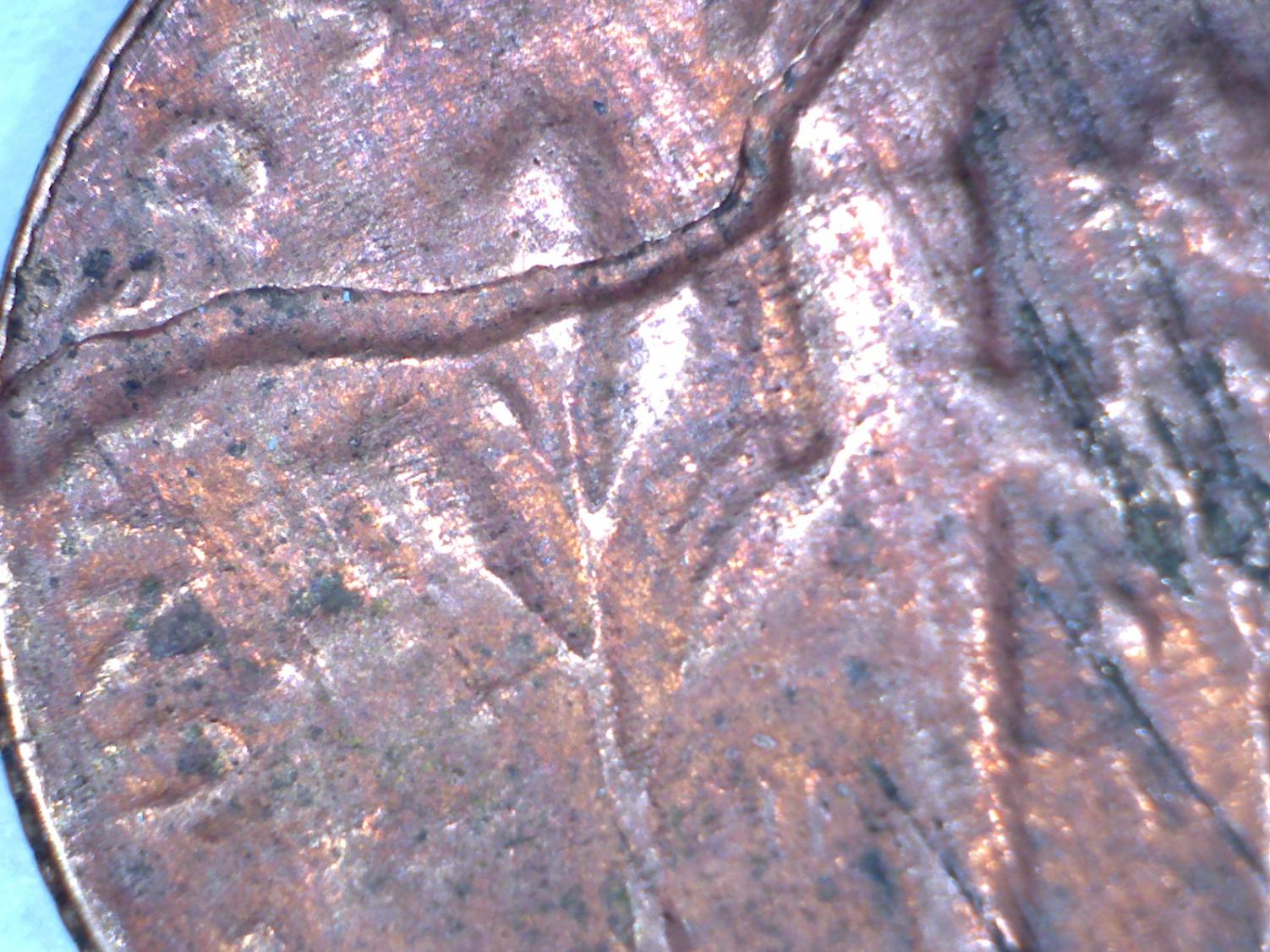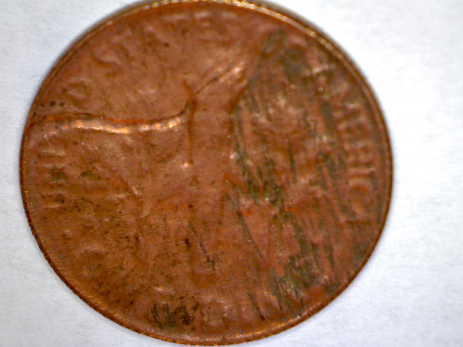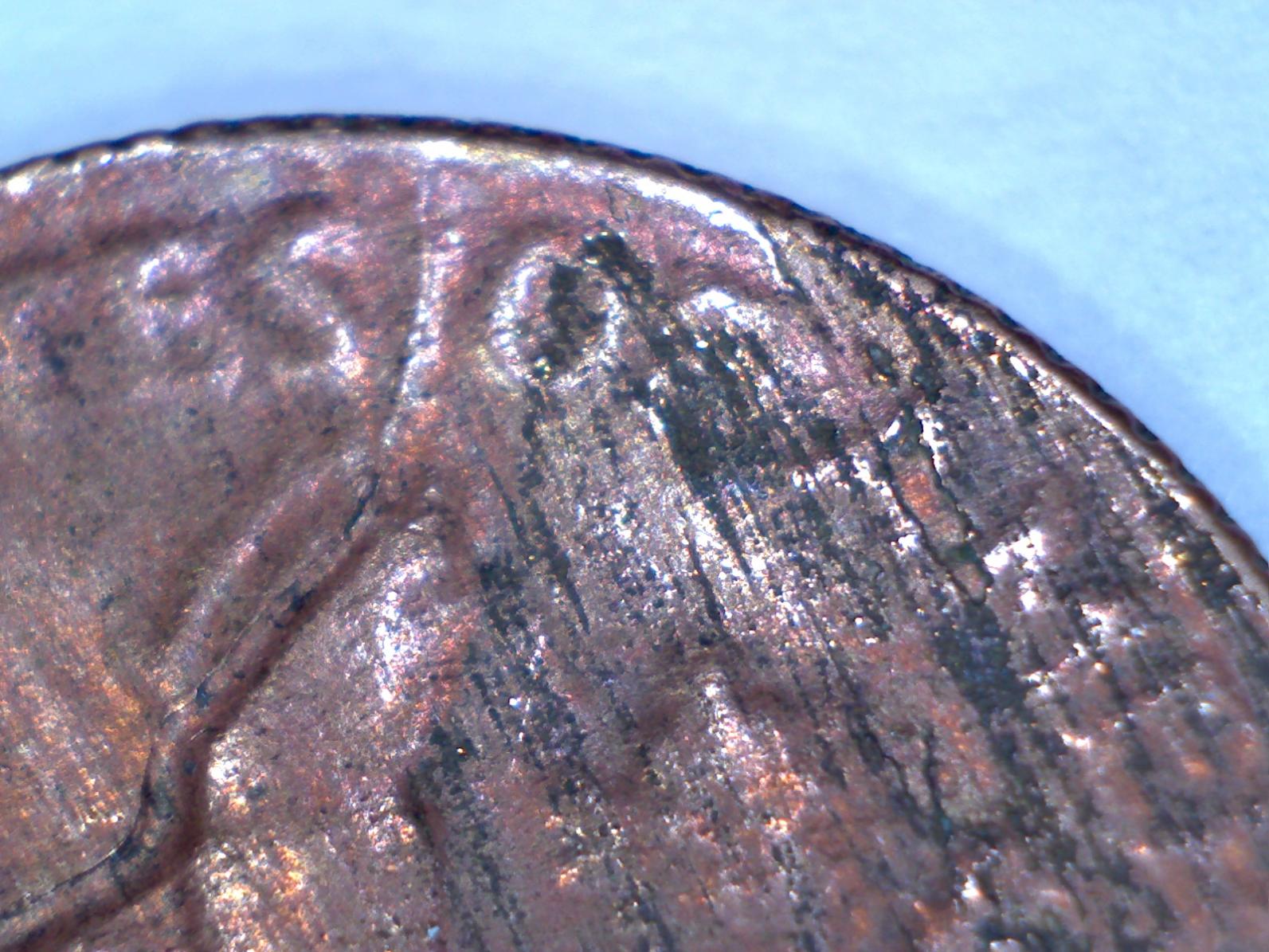 The layer came off post-strike. The damage on the front and back might have been caused by someone intentionally pulling off the clad layer.