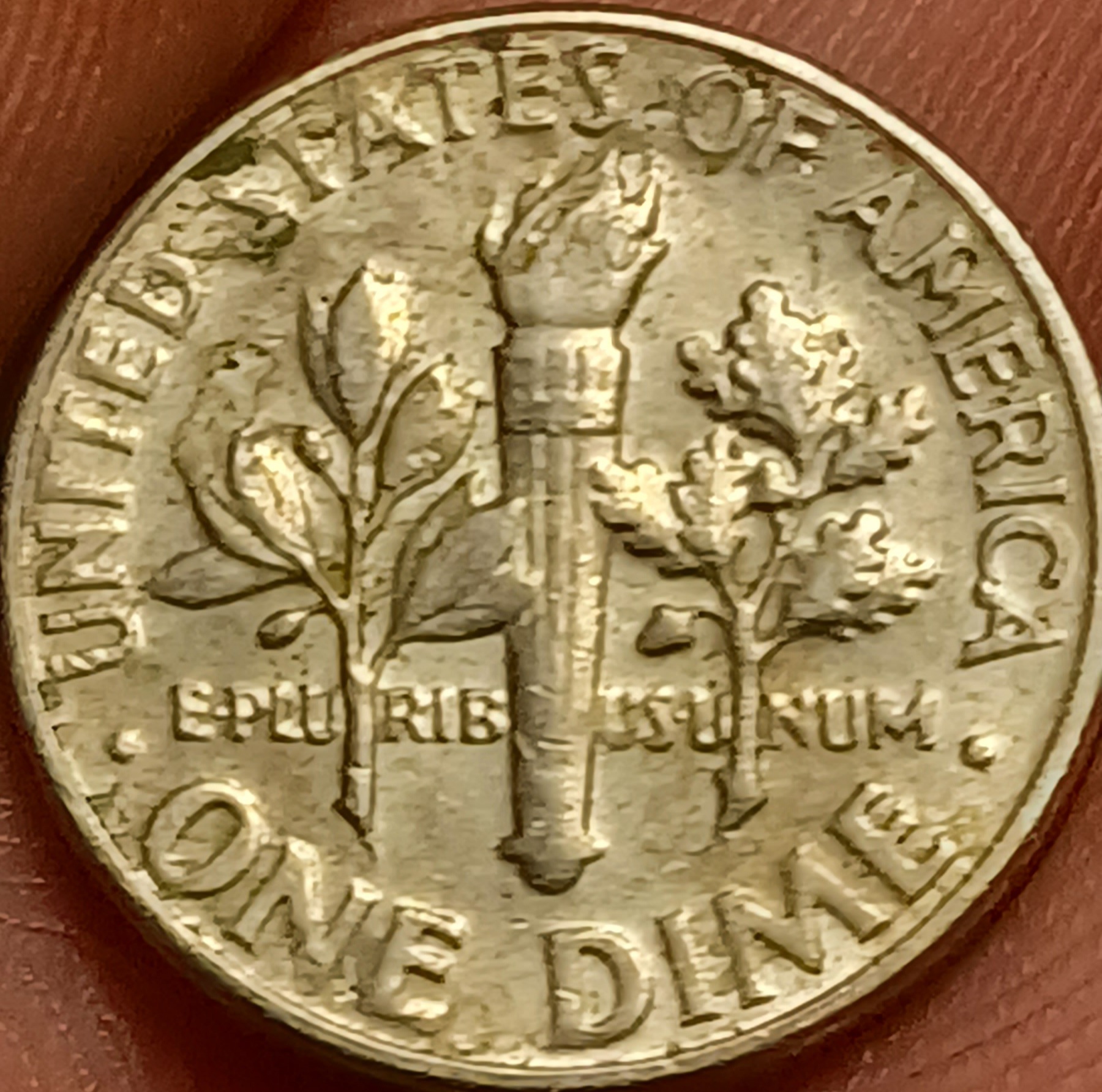 All, Could I get some info as to what's going on on the reverse of this dime. By the O in of it seems like a torch imprint, and it looks like an s above olive branch.. Also do you see any doubling on the obverse in in God we trust? Hope the pics are ok. Thanks for your info