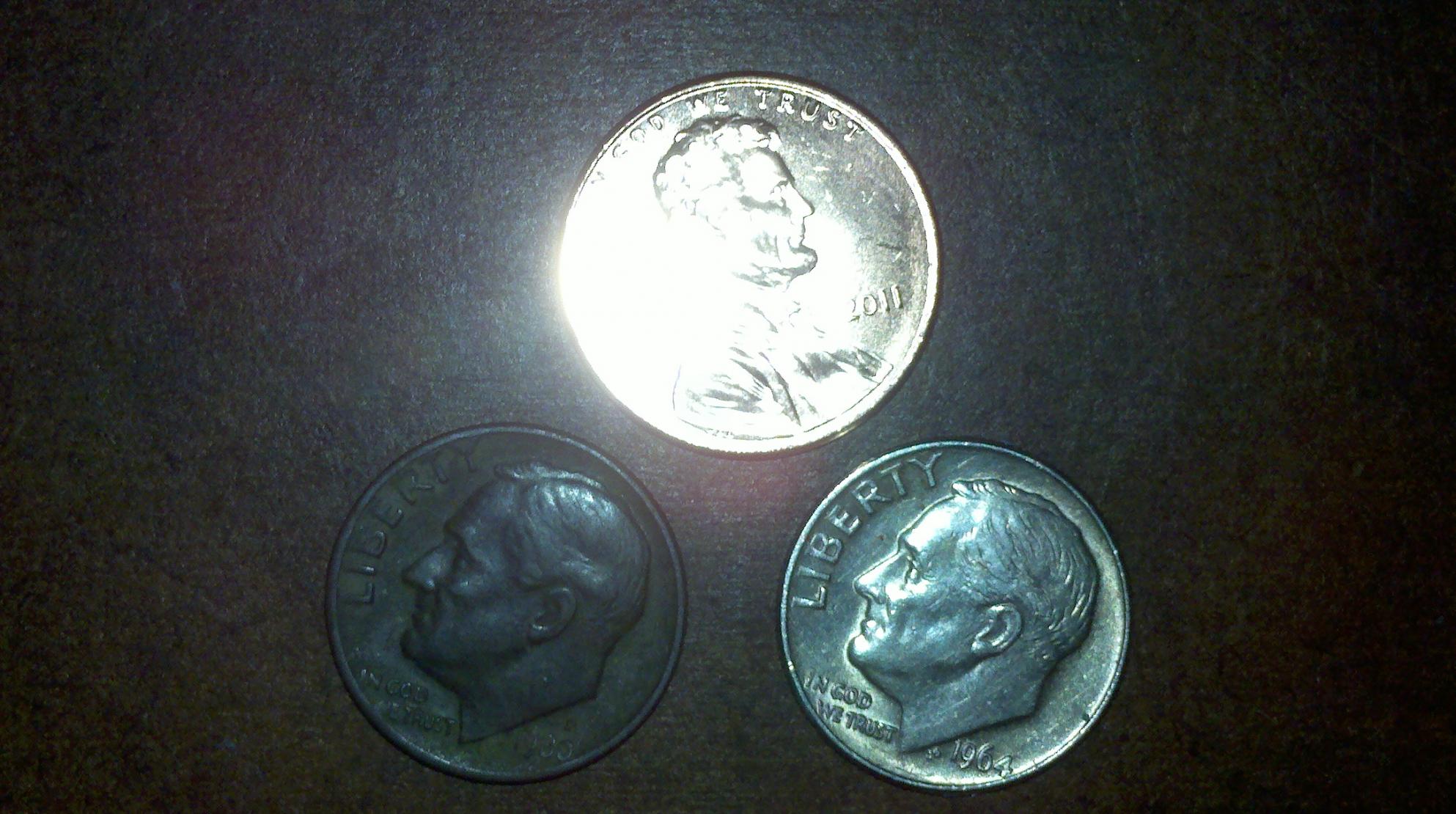 Dime is darker than pics and is thinner!! The head sticks out and the coin rocks on it( don't lay flat because of the head)! All opinions welcome..