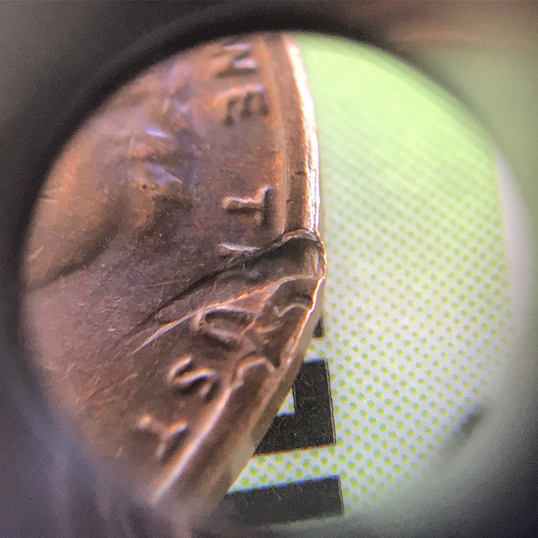 The reverse looks like damage, but I have no idea what caused the mark on the obverse. If it is damage, why can we still see that part of the "R" raised? And, what are the other marks on the rim. What do you think @paddyman98 ? @Fred Weinberg? Chris