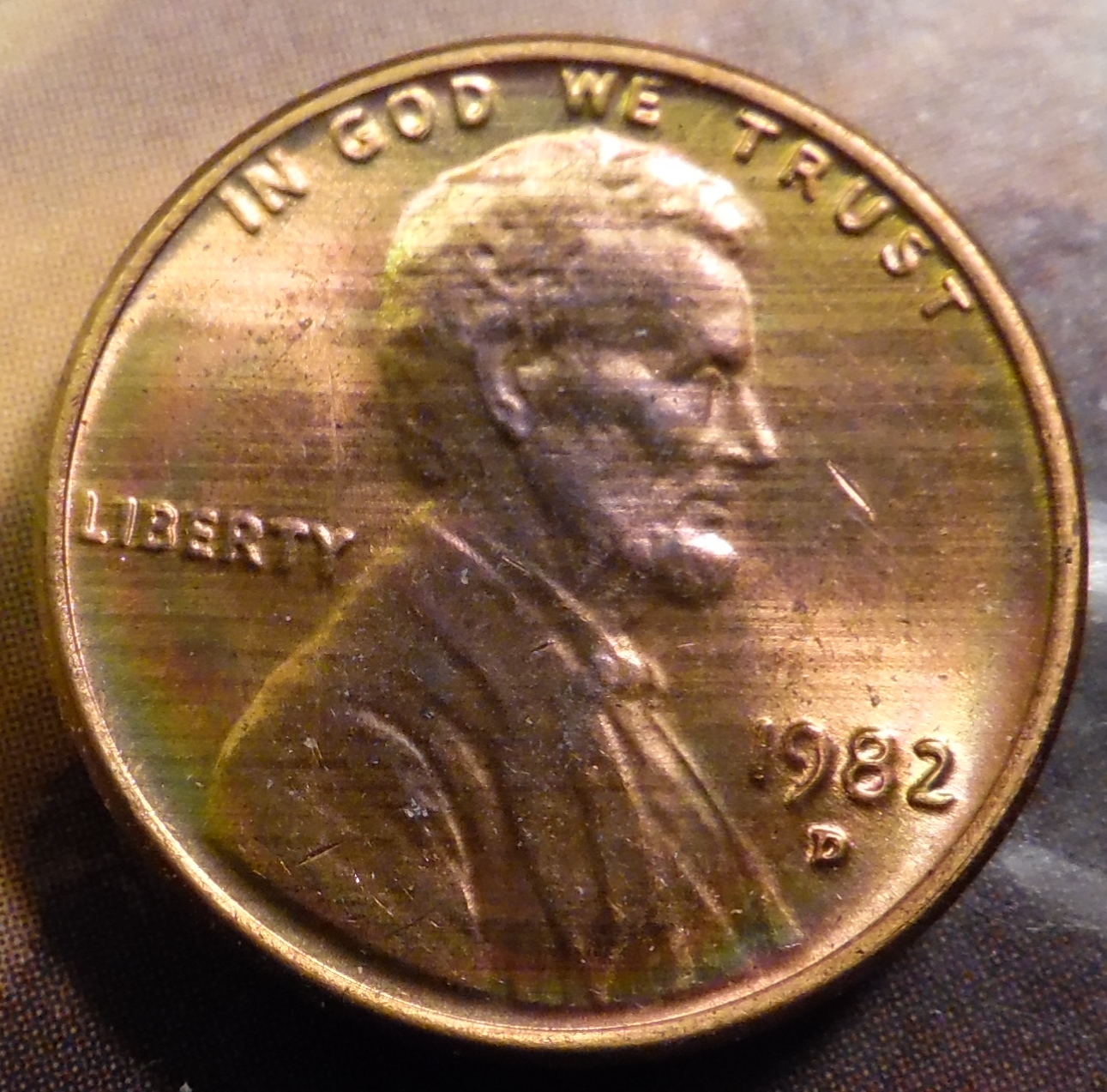 Here are pics of the 82 LMC that the set has listed as a "Copper" cent. Is there such a coin, or did they just make a mistake and it should say Bronze? It is a beautifully toned coin with striations across the obverse. The scale only does tenths, so it may be off just a little? I am open to hear what you all have to say about this.