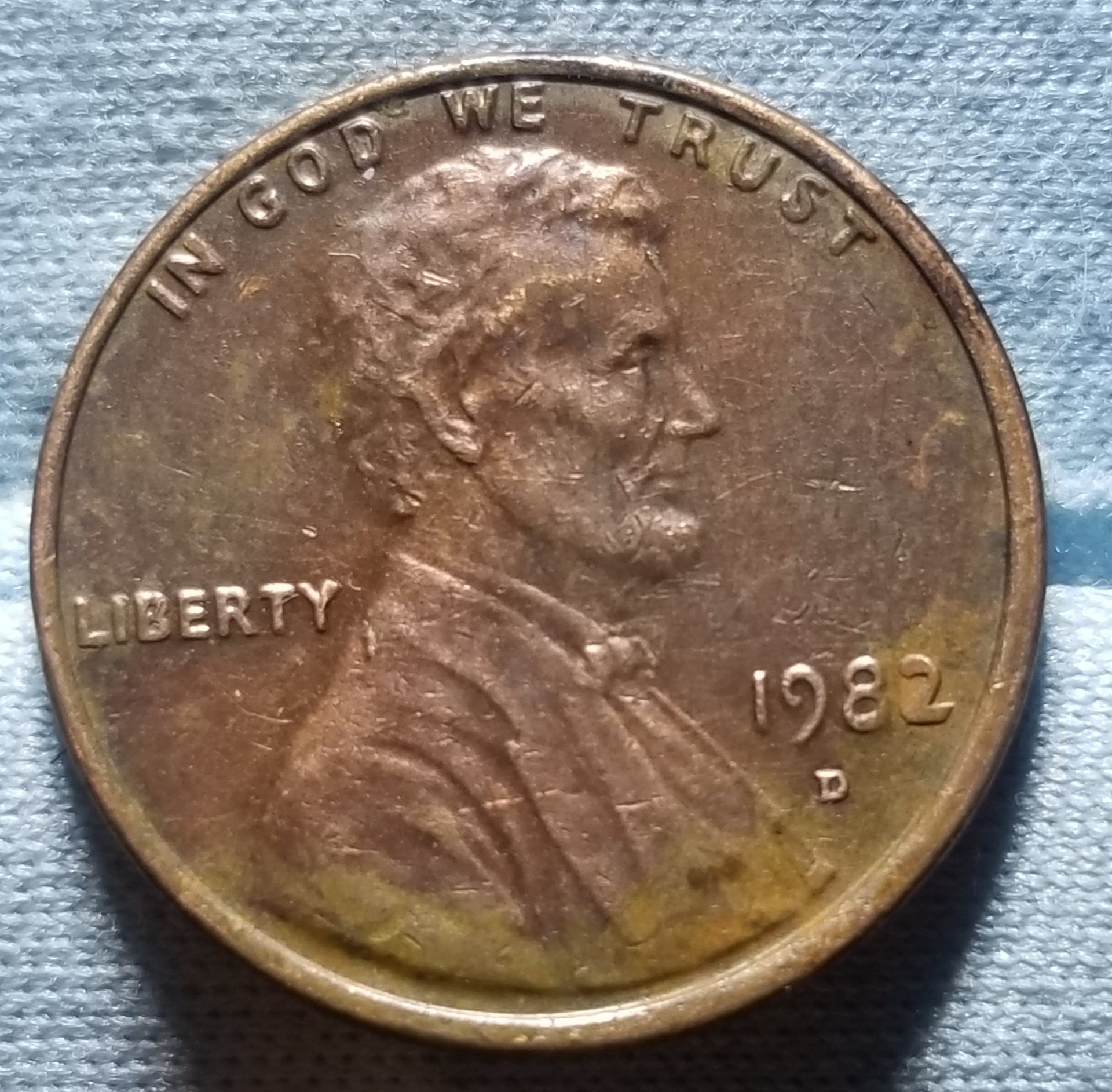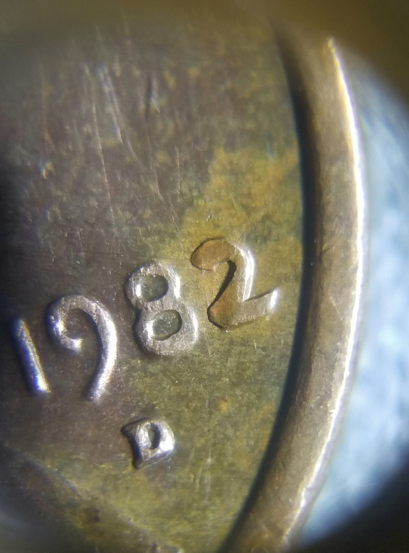 1982 D Lincoln 3.0gms in weight although pics don't show it very well there is an imprint strike of something starting from top of the 2 in date and goes straight to the bottom but can't make it out. Any ideas anyone?