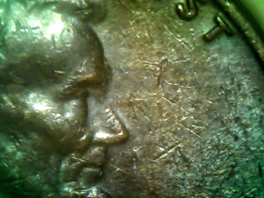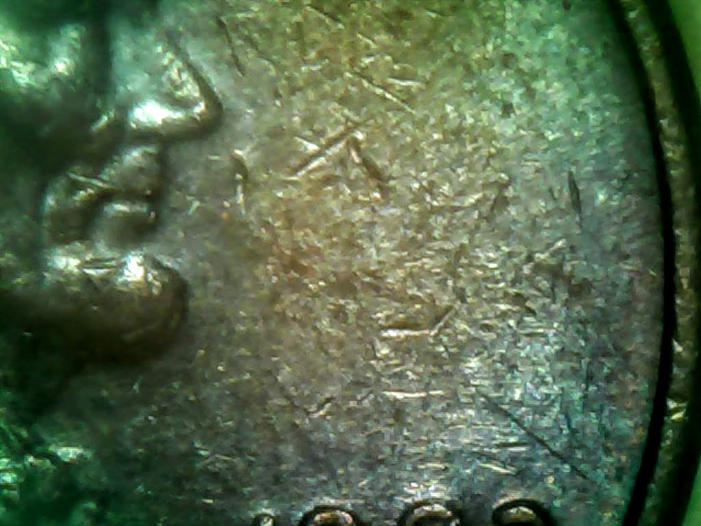 Obverse and reverse was struck through grease and debris the nose, back of head, liberty, and above date. Reverse left of memorial at UN and right of memorial are heavy concentrations of grease with debris sticking out of it. There is debris all over both sides. Any thoughts?