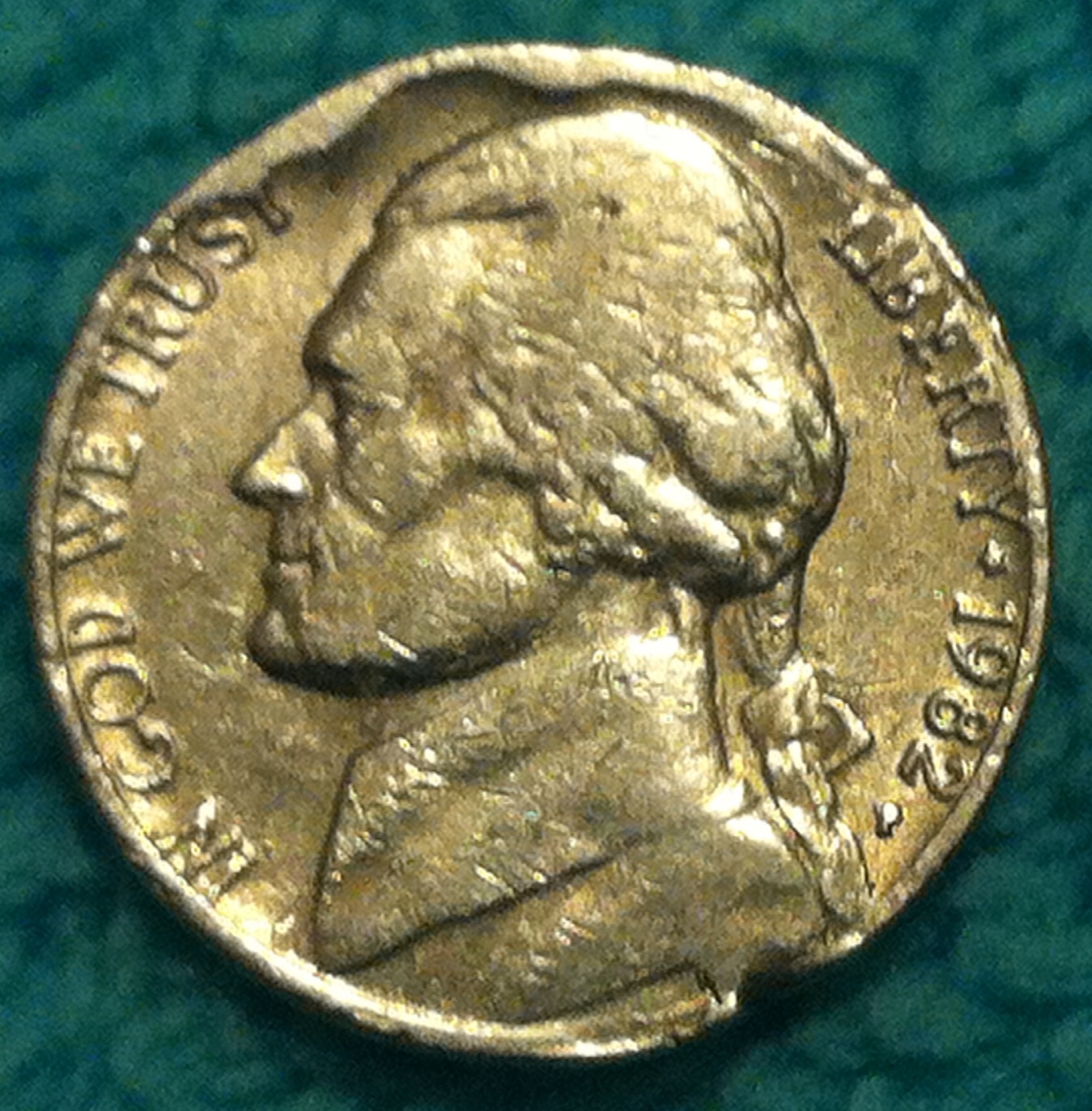 I have a 1982 Jefferson Nickel....I believe it's a PMD Nickel, but I'm not for sure. The S and the T in Trust do not look PMD....Any thoughts? Thanks in advance!