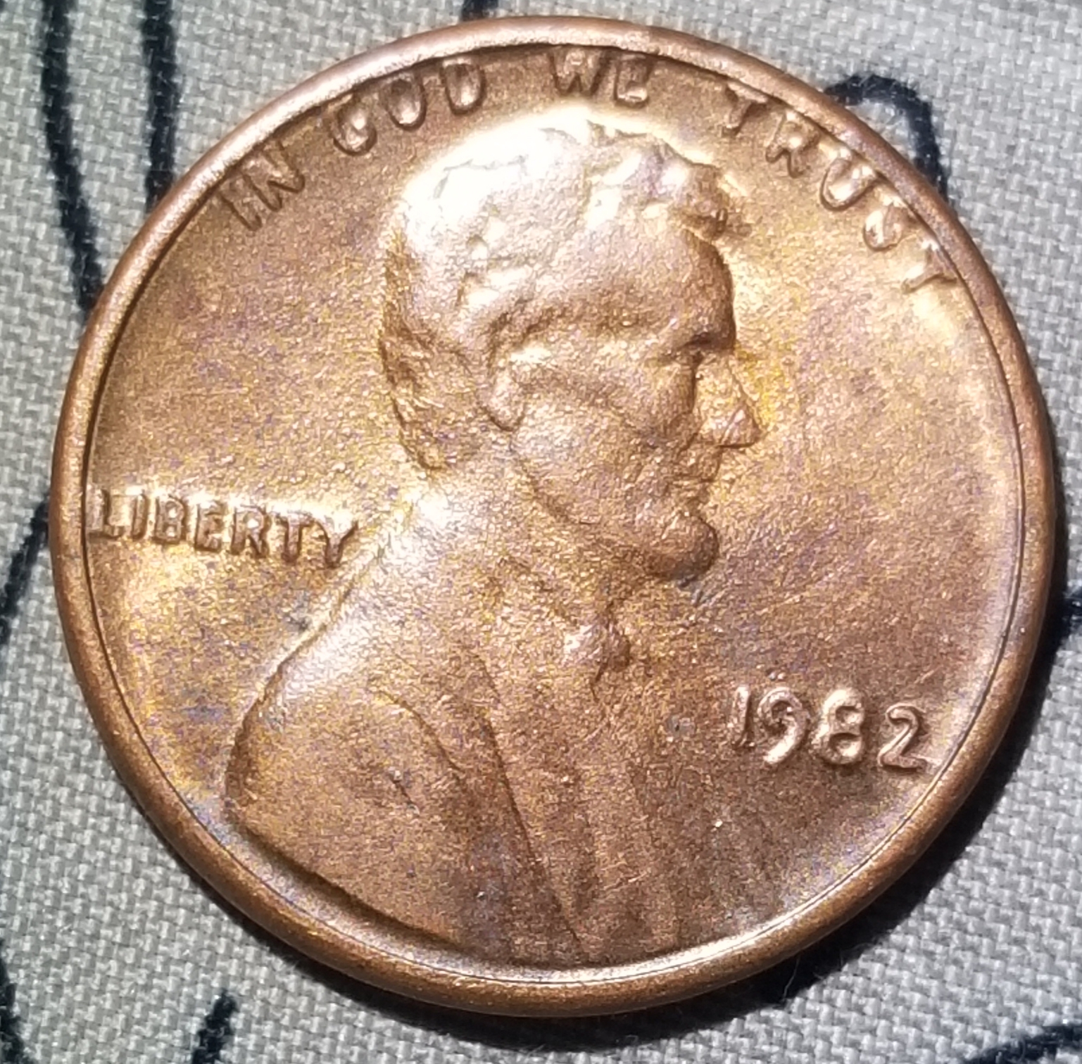 1982 Lincoln that shows on the top of the word GOD is pushed down and on the word TRUST the UST look larger than the TR. On reverse the same affect is on AMERICA and the initials FG are illegible. Sorry of the poor quality but top horizontal line of E in CENT is seperated from the vertical. Doesn't appear like it in pic but it is and that is not a die chip but blob of plating in pic. Any information is appreciated..