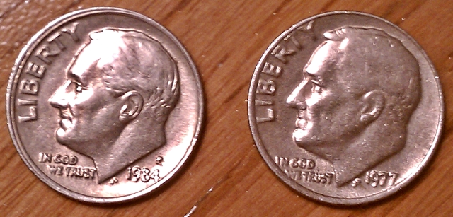 I came across these two coins and figured I would post them up here so someone can tell me if they are worth holding on to or not. Notice the rims in each error coin. I have a normal penny and dime in each picture for comparison.