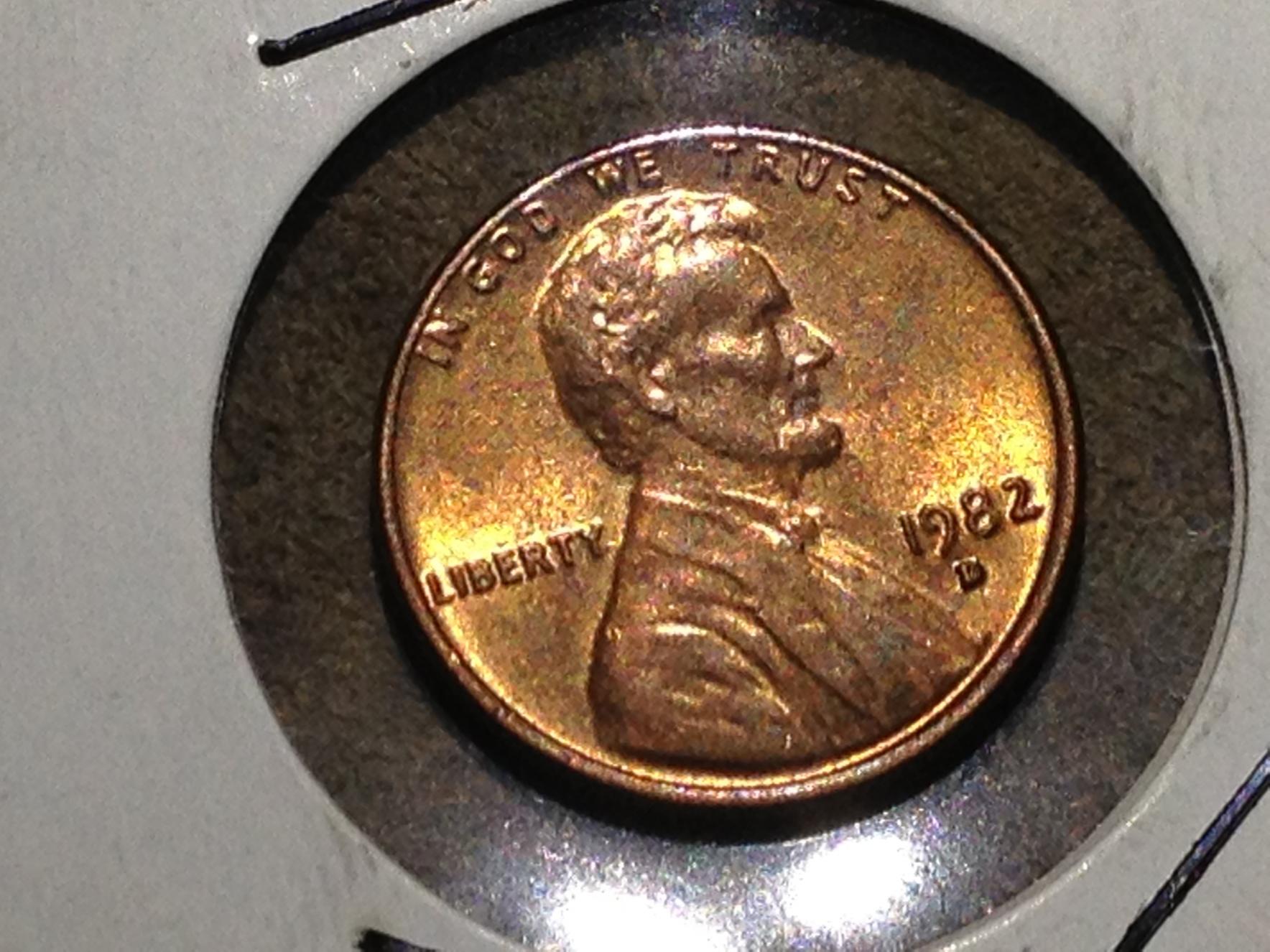 I found a 1982 large date penny and I don't see a vdb on it and the coin is in excellent condition I looked with my 20x magnification glass and still don't see it I would post a picture but can't figure out how to with my phone has anyone heard of an 82 with no vdb