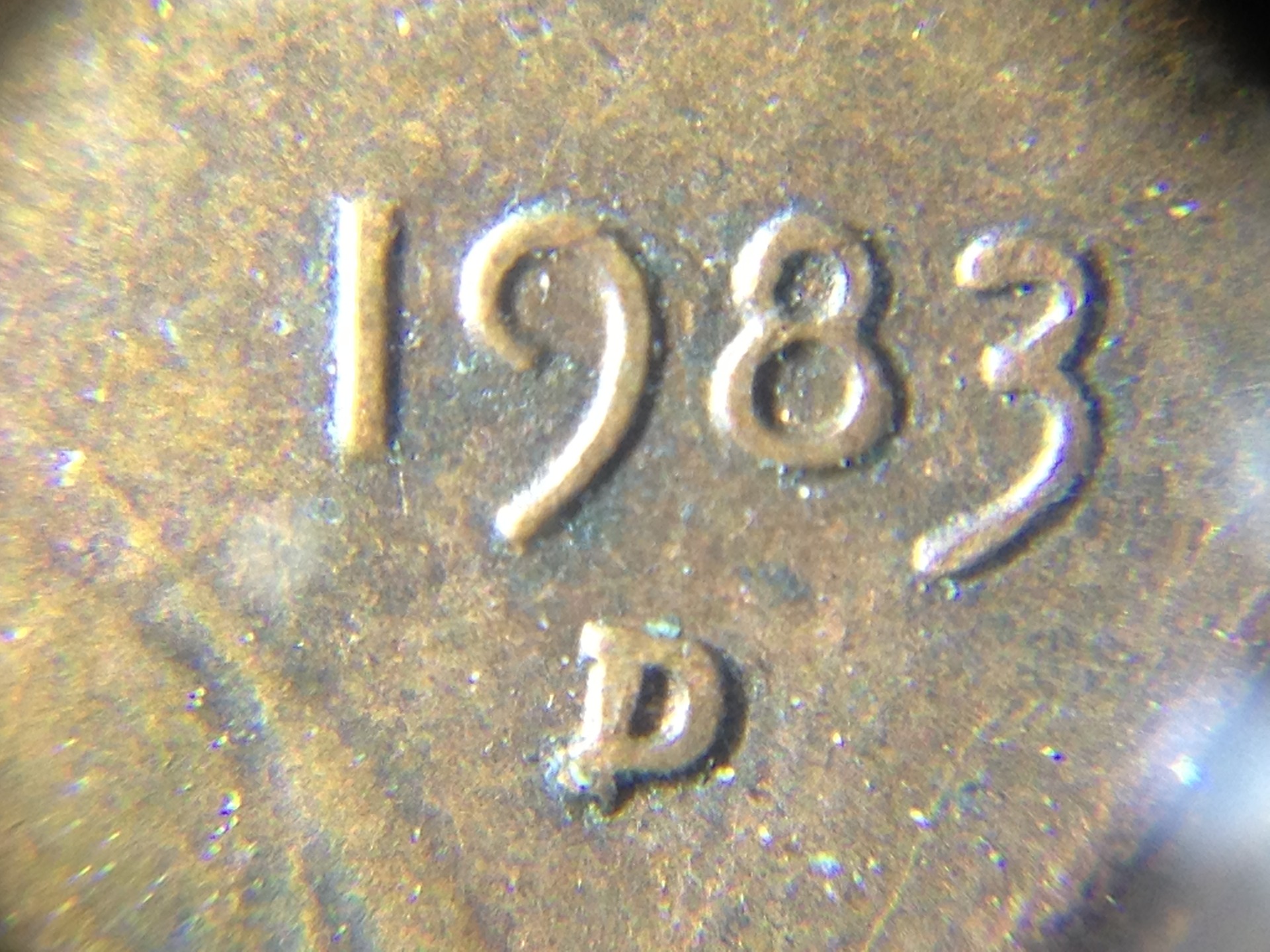 the 83 one has a zinc rot hole in the copper plating on the bottom of the D mintmark. the 69 one looks like a normal circulated coin from years of use.