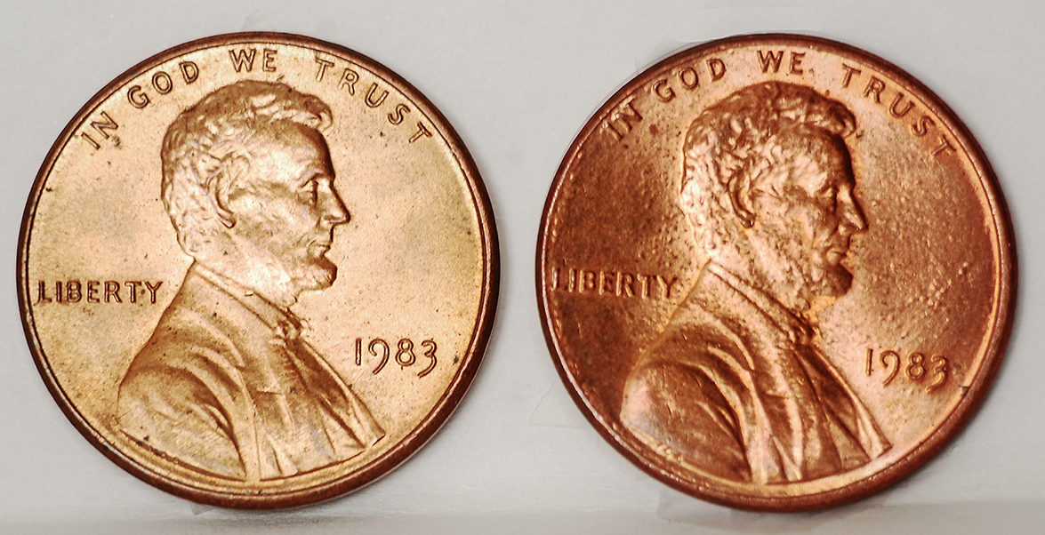 The photos may not show the bronze color as I see it, but the coin on the left has a bronze or light gold color. I did soak it in acetone to see if it might be paint, but it stayed the same color. Both coins weigh the same... 2.5 Is this a lack of copper on the coin?
