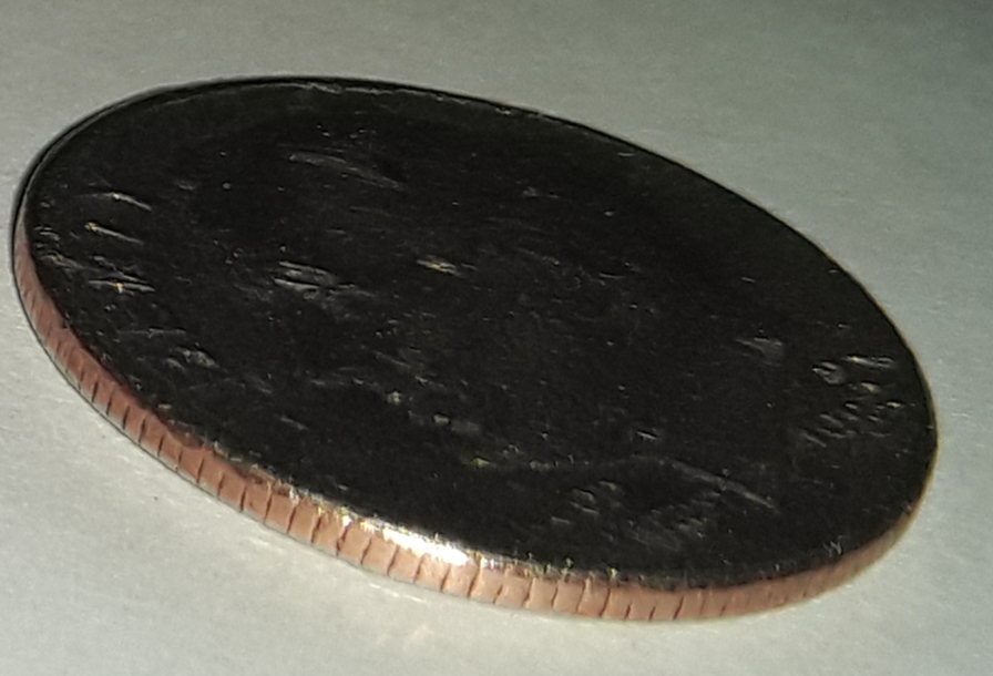 From naked eye coin looks penny colored on sides of dime,also has smooth areas. Is it clam shelling error?Thank you in advance for all replies