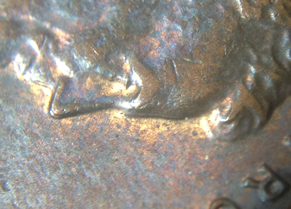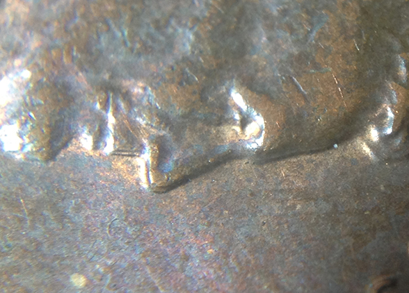 Multiple hubbings will never take away from the thickness of the letters...it can only add to it. Your coin shows mechanical doubling.
