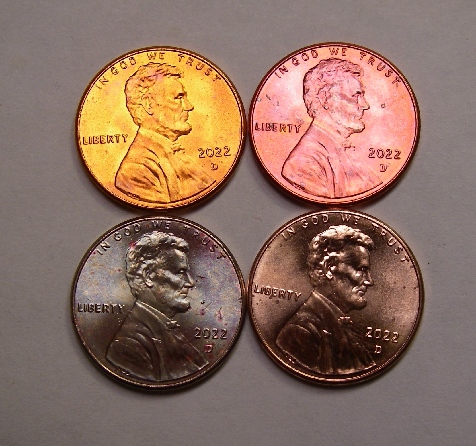 Not saying that there aren't brass plated cents coming from the mint. In fact, I believe there a number of them out there. But how do you PROVE its from the mint and not PMD? As @-jeffB pointed out Zinc can migrate into the copper during heating. Environmental conditions can turn copper numerous colors. Just because you see yellowish plating doesn't prove it was mint plated brass. Did you do CIELAB or other color maping to determine the L*,a*,b* of brass plated cents? Did you correlate your vision against the color map? No. You're just giving an opinion, NOT PROOF That's what I've been saying through this whole thread. We may all believe the mint made brass plated planchets (I do). But we can't prove it with destructive testing. Cut one in half and I can prove it on XRF (lab, not handheld), XRD, or SEM-EDS very easily. But I can't do an accurate non destructive test.