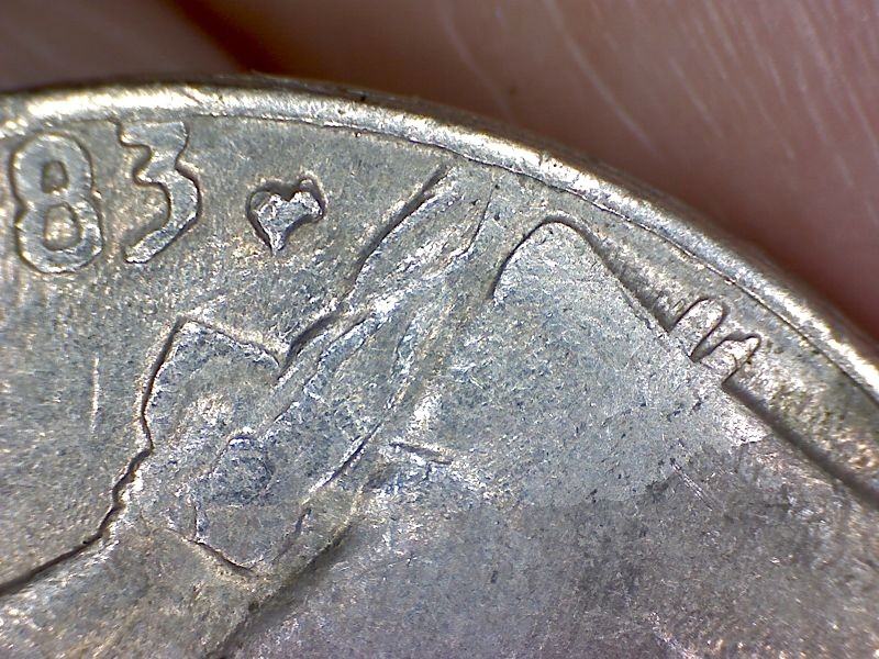 Is the designer's intials, MM and the depression on his collar all due from a bad die?