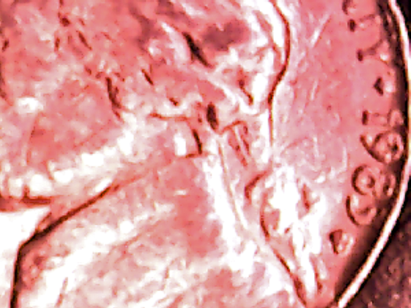 I believe that @BooksB4Coins meant that the die was polished. This has happened to other dies like the one that produced the 3-legged buffalo. Chris