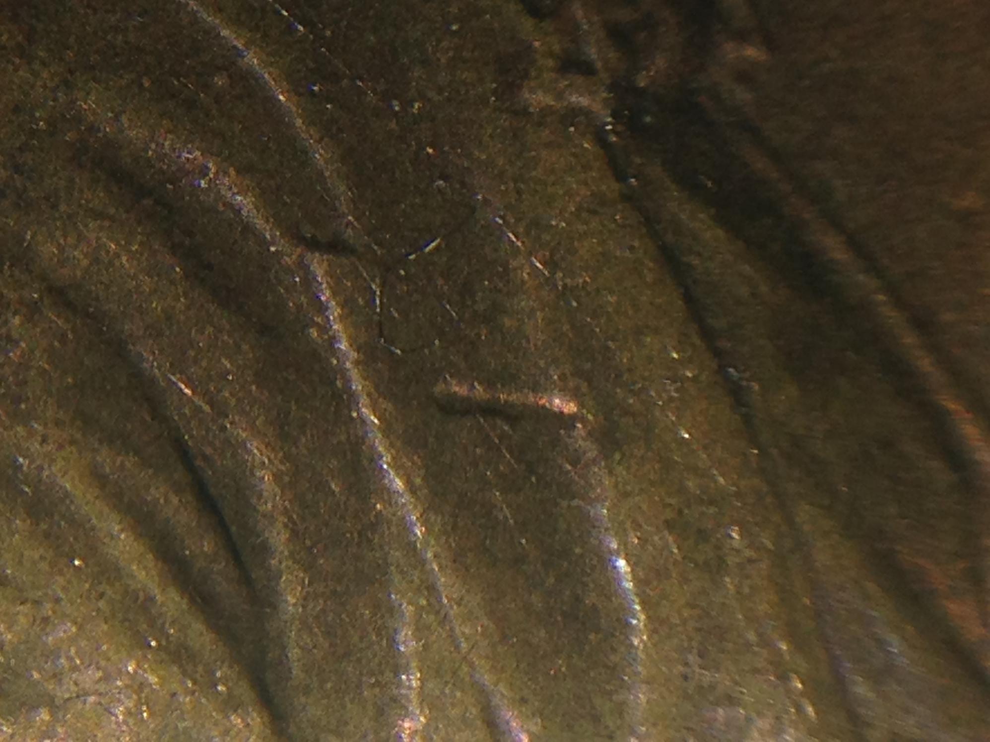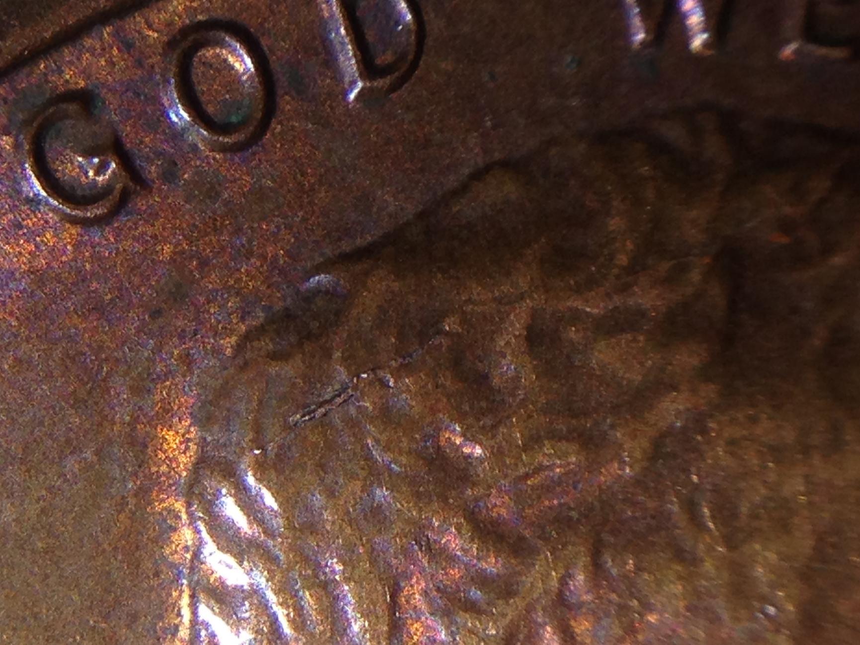 I see what appears to be a die gouge, a die crack, nothing, and another die crack. None of these are really errors.