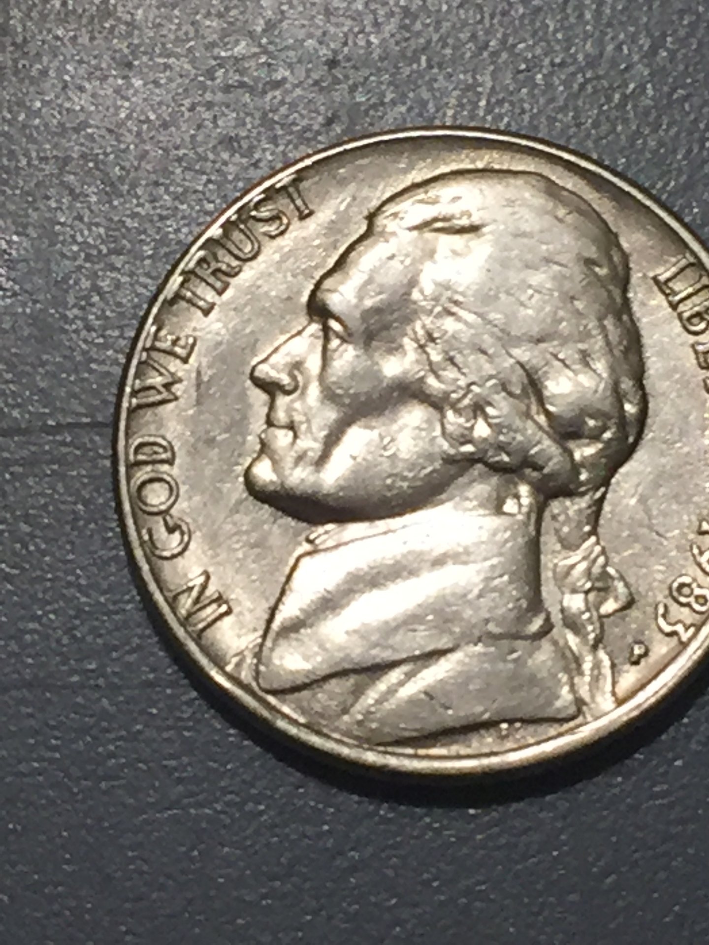 Looks to me like the top of the "e" was there. You can faintly see it. Photo looks like it was damaged off, worn off, or maybe from grease. Im guessing worn off somehow.