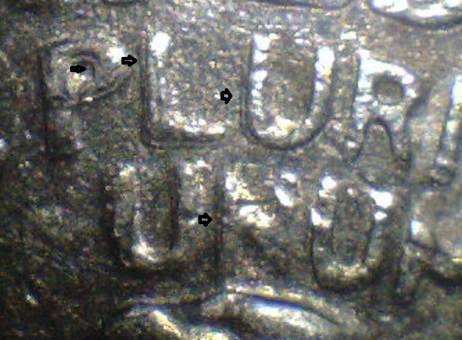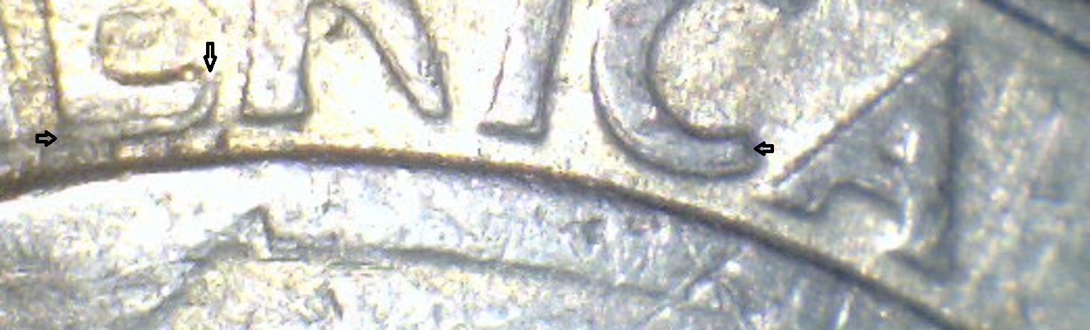 i was told no notching...no doubled die. I don't know for sure about the E PLURIBUS UNUM but the E in AMERICA and maybe the C that I marked in one of the photos. advice appreciated.