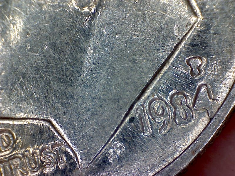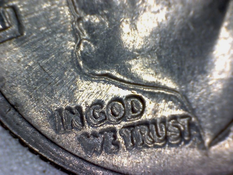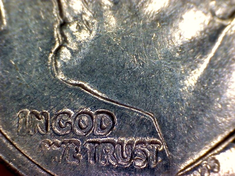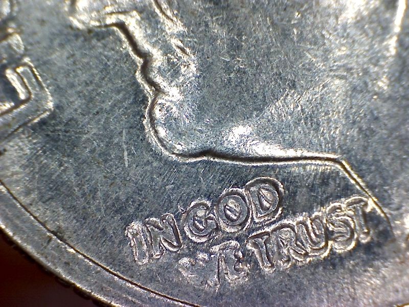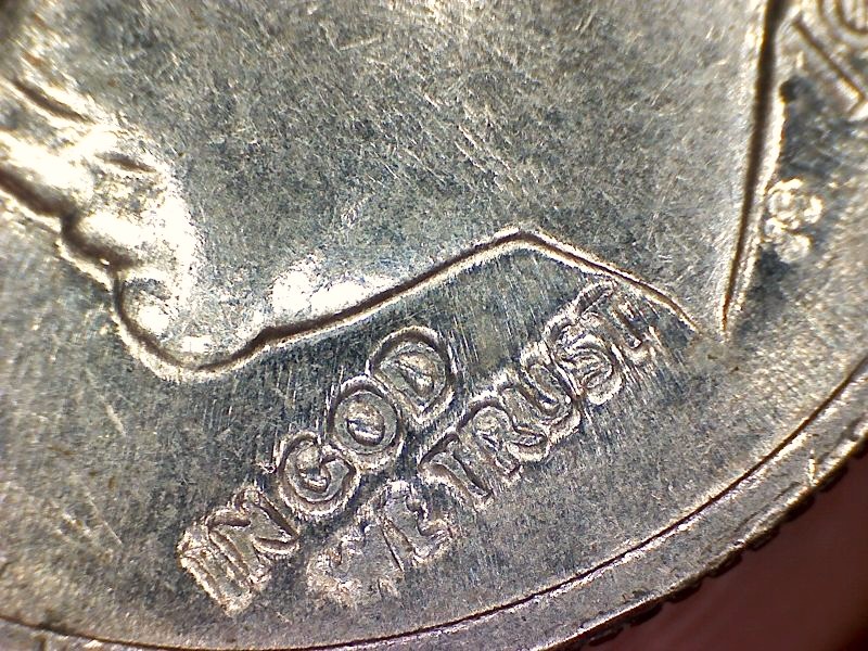 There are clear raised " bars" inside GOD, the ST in Trust and the "9" in the date. The rim is slightly off center.
