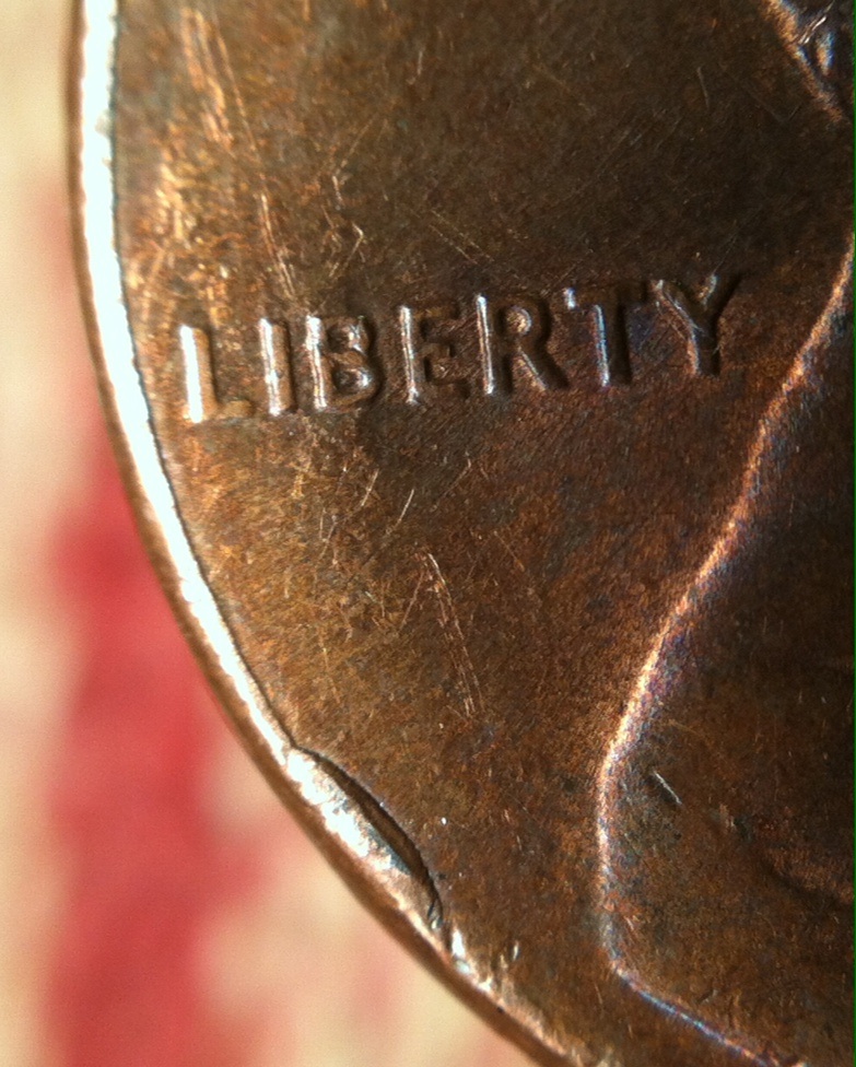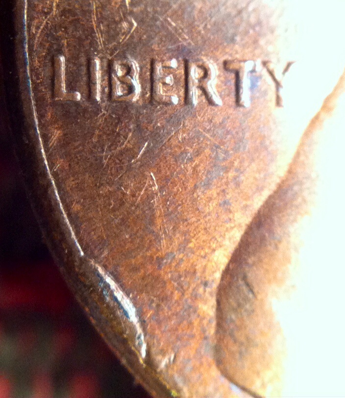 Got this in change yesterday. It's small, but I'll take it. The rim is almost non apparent in this area, and it appears to extend, slightly, into the field. Cud-on-Coins doesn't have a listing for one in this area, but they do have listings of similar size. Thanks for viewing & comments welcomed.